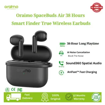Oraimo Wireless Earbuds OTW-324S SpaceBuds Air with Half-In-Ear Comfort and 38-Hour Playtime,Free Anti-Lost Lanyard Included. Black