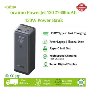 ORAIMO Power Bank Laptops & Phones Fast Charging PowerJet 130 27600mAh 130W Type-C Fast Charging Smart Digital Display ,Charge Power bank to 100% in 1.5hrs (100 W) 27600mAh