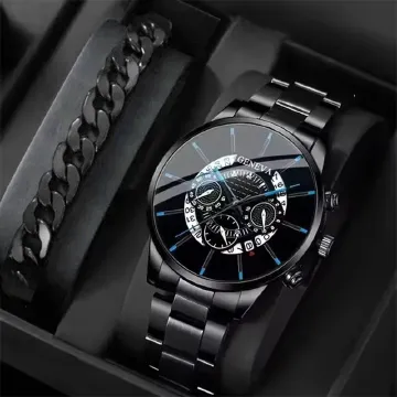 Generic Men's Quartz Watch Set Black Titanium Steel