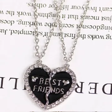 New Arrivals 2 Pcs/Set Best Friends Necklace Heart-shaped Zircon Inlaid Love Pendant Jewelry Beautiful Heart Pendant Alloy Diamond Necklace Collar Party Jewelry Accessories Gift Black