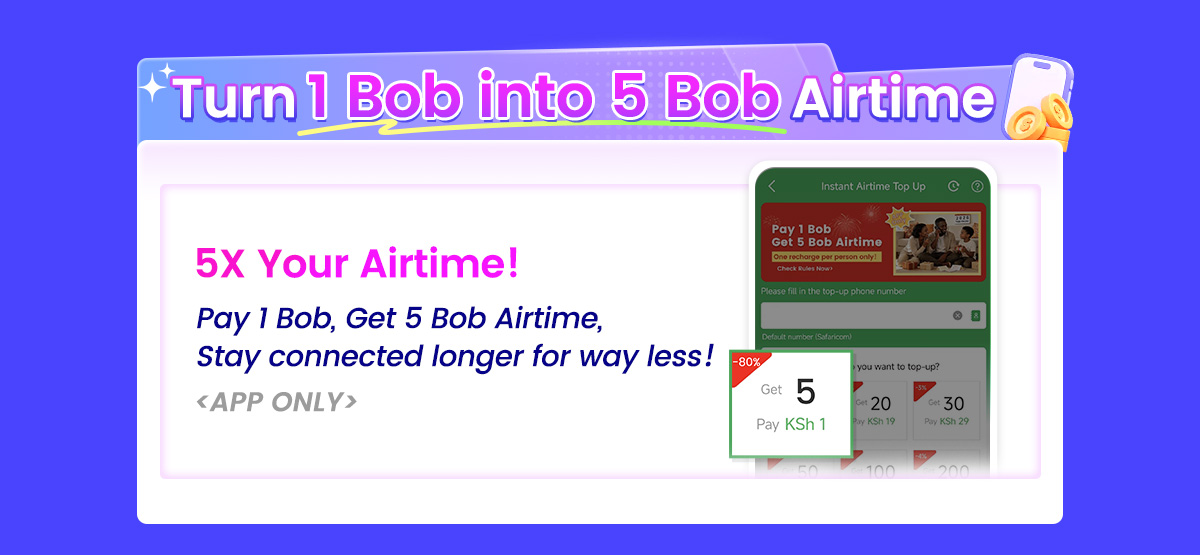 Airtime: Pay 1 Bob Get 5 Bob Airtime (APP Only)