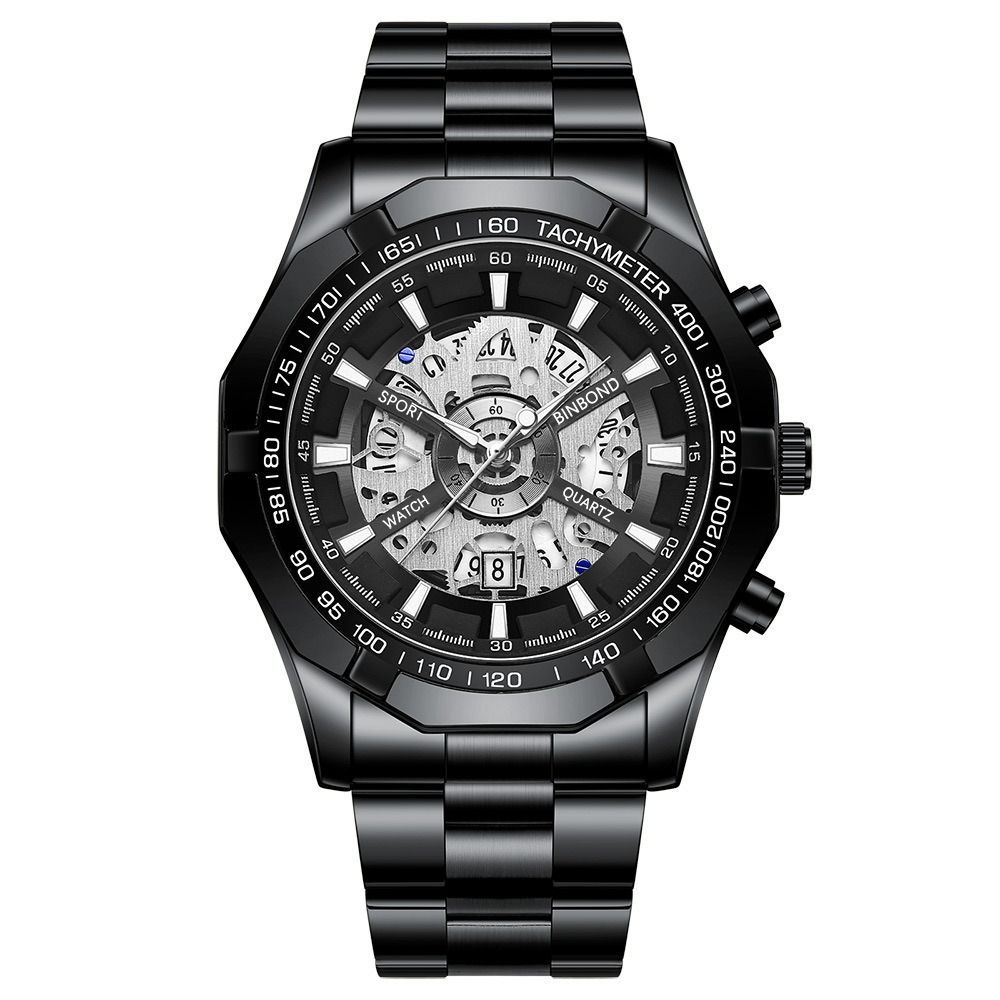 2024 Binbond Hollow Non-mechanical Waterproof Watch Blue Men's Watch Exquisite Workmanship Fine Smooth Feel Night Light Waterproof High-end Handsome Men's School boy Students Wrist Metal Watches