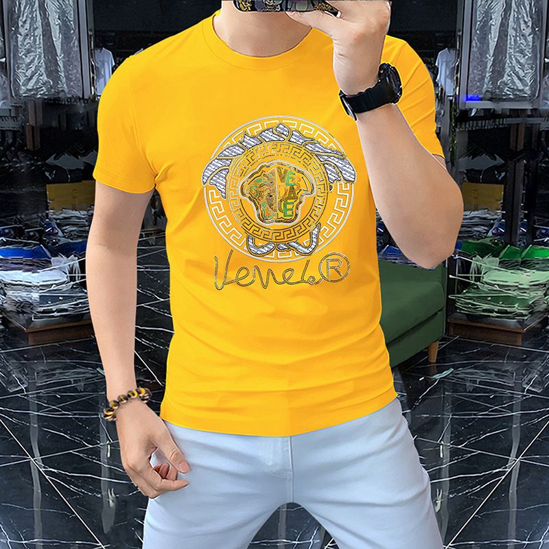 Men's short sleeved t-shirt, European goods, heavy craftsmanship, laser sequins, fashionable men's half sleeved round neck shirt, high-end silk cotton trend