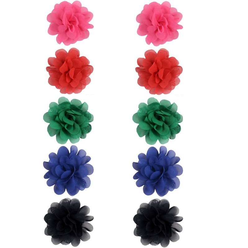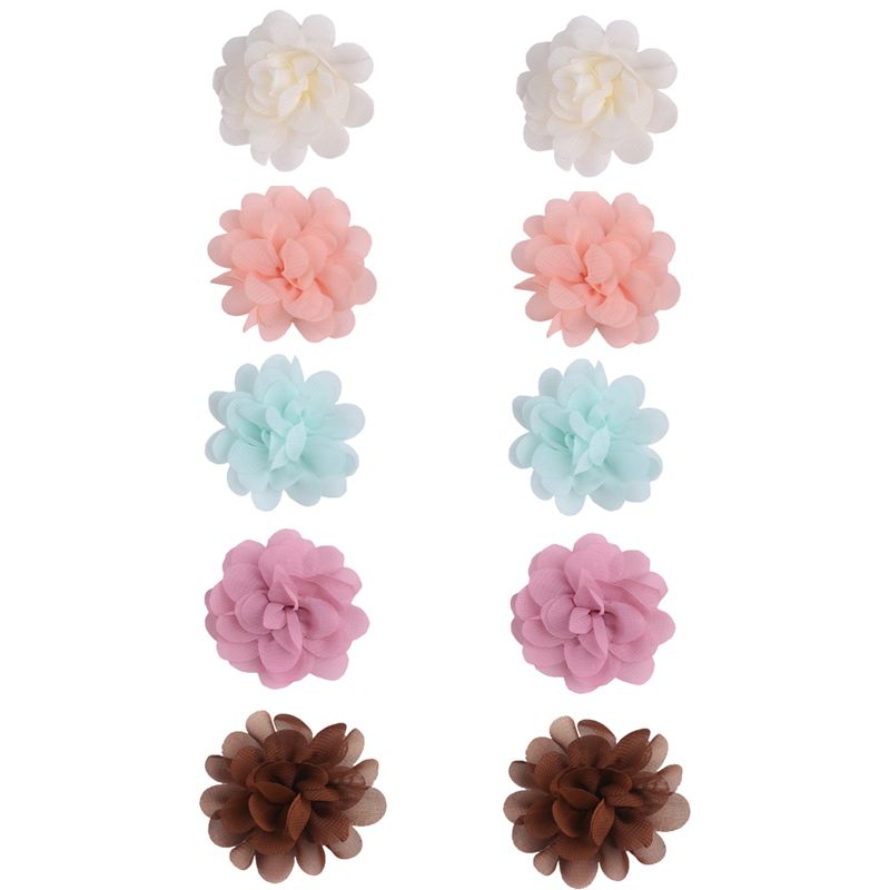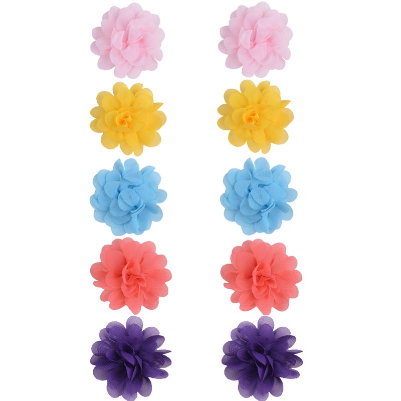 10pcs 2" Chiffon Flower Hair Bows Clips Flower Tiny Hair Clips Fine Hair for Girls Infants Toddlers
