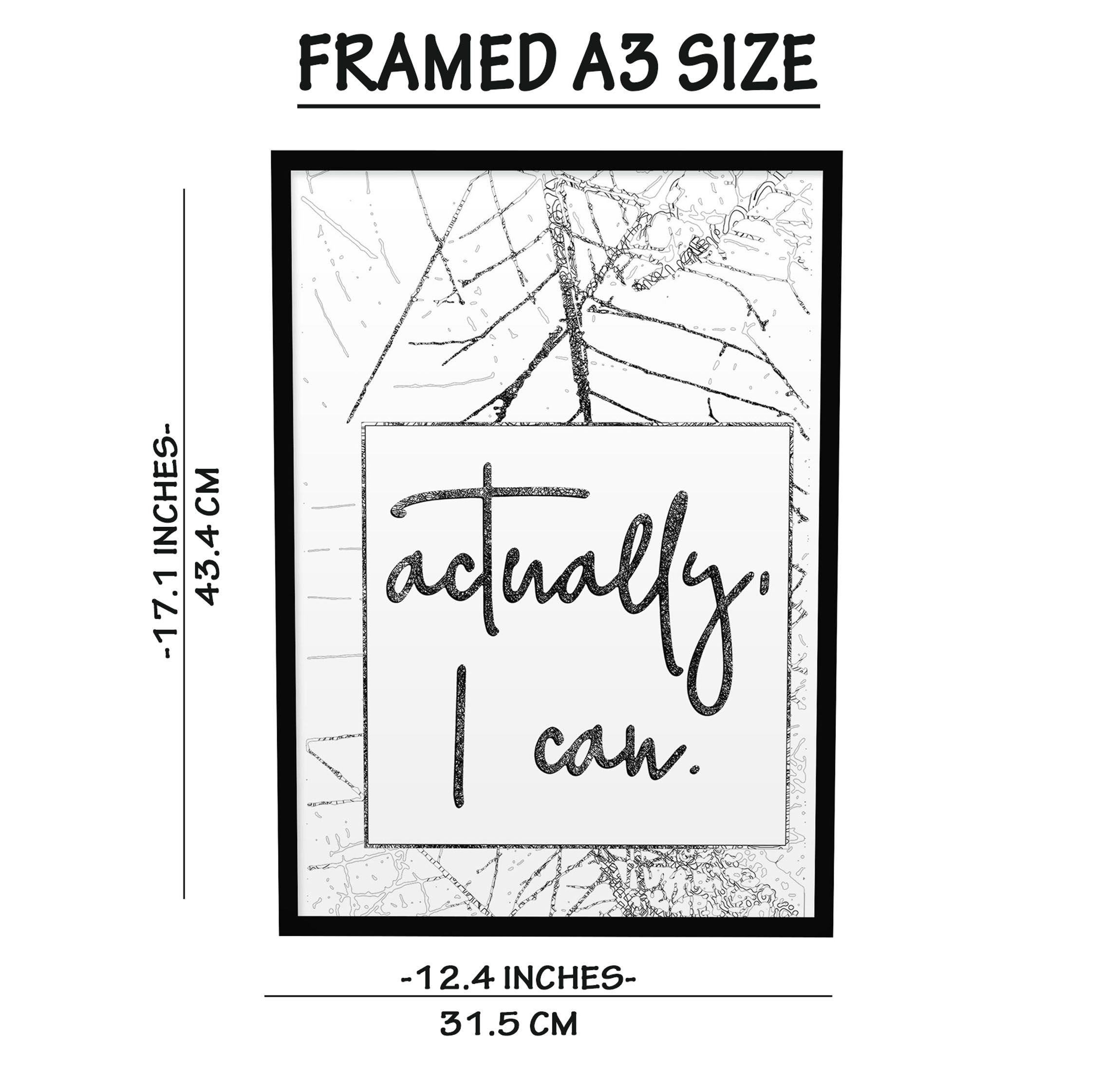 Actually i Can, Inspirational Office Decor, Ready to Hang, Motivational Home Decor Quotes, Framed White , Black Wood Frame Wall Art for Home Decorationcoration