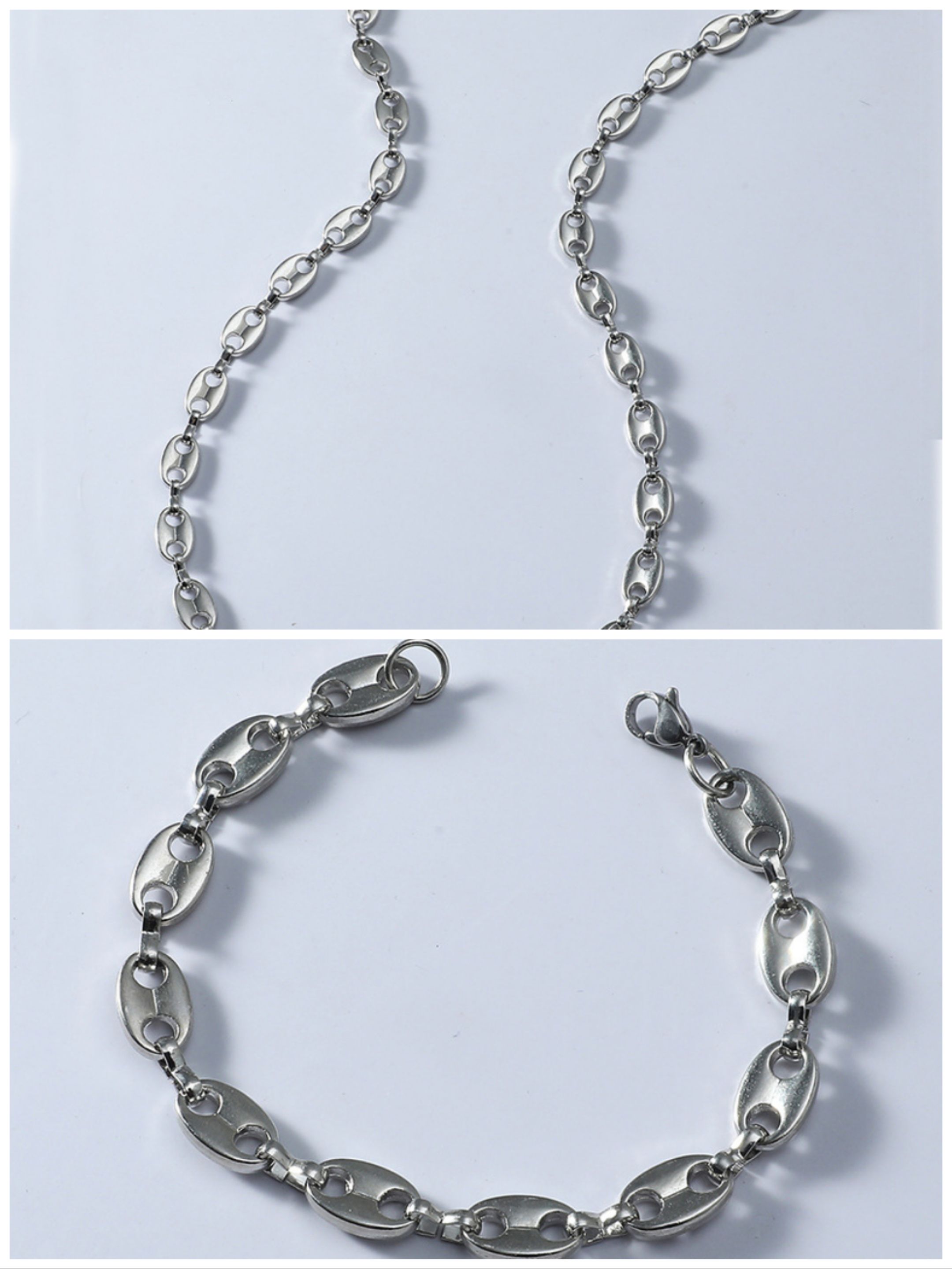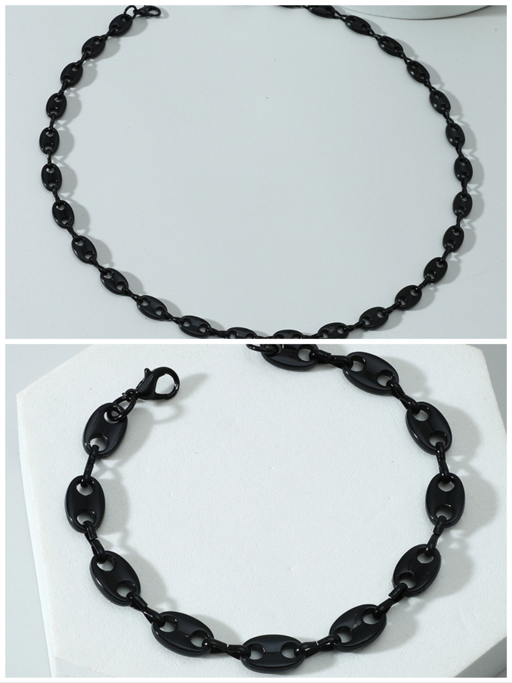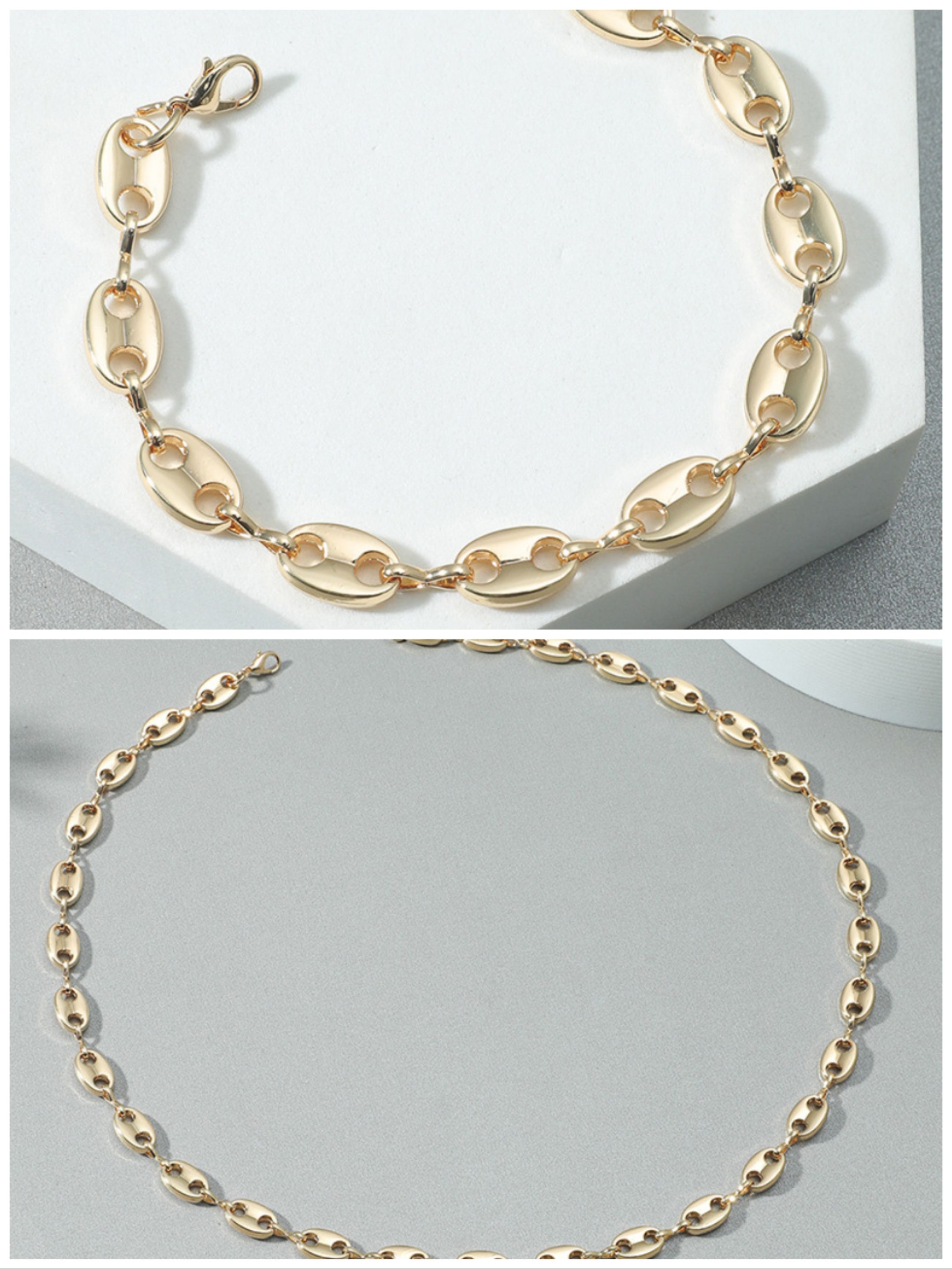 2PCS Coffee Bean Chain Bracelet Suit Men Women Pig Nose Necklace Hip Hop Personality Charm Jewelry