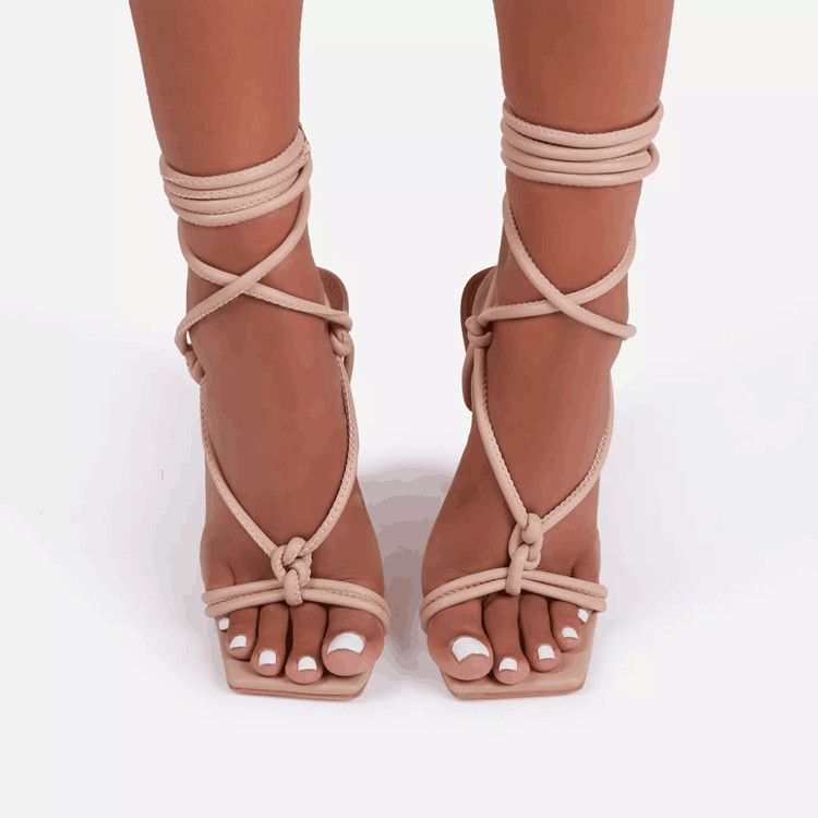 New Women High-heeled Shoes Sandals Pink Stiletto Party Fish Mouth Cross Strap Metal Pendant Catwalk Women's Shoes 35-43