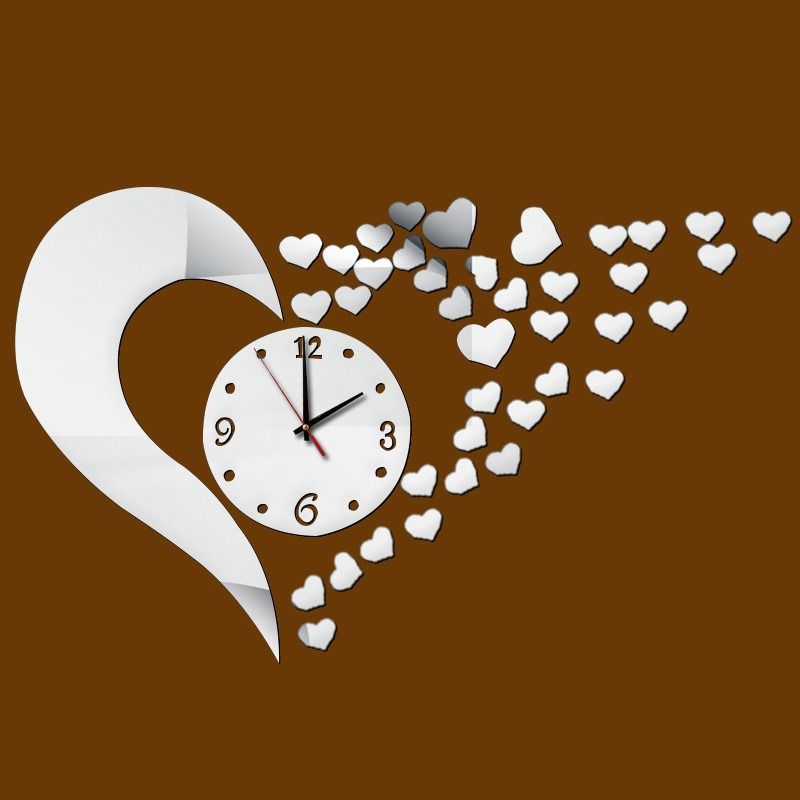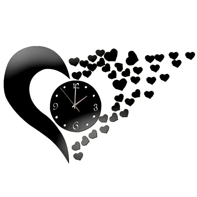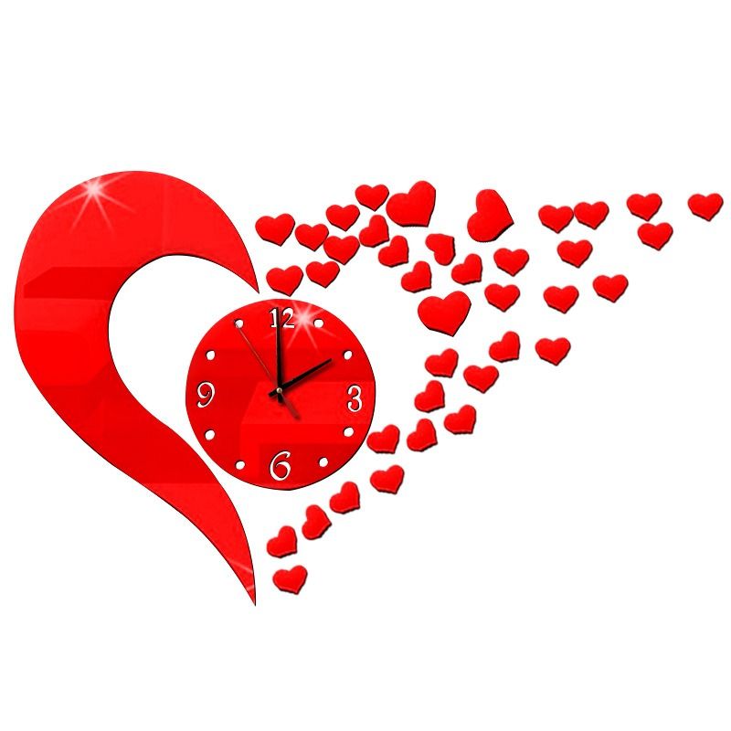 African PopularTure Love 3D Acrylic Mirror Decoration Wall Clock Sticker Modern Design DIY Living Room Dinning Room Meeting Room Big Heart Mirror Clock Wall Sticker Students 3D Art Wall Clock