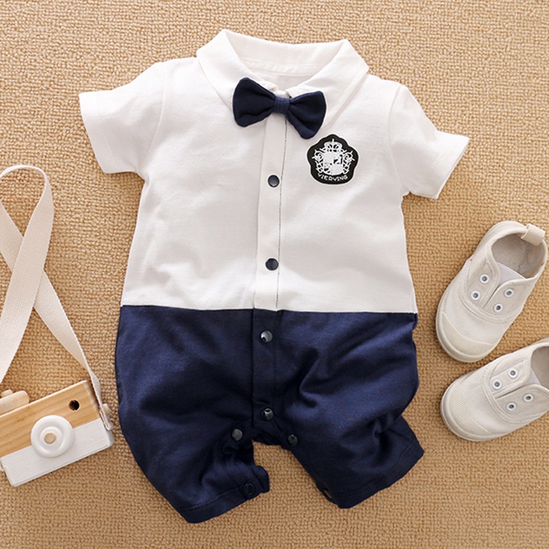 Gentleman Summer Onesie Newborn Toddler 0-18 months Tie Outfit Baby Boys Short Sleeve Suits Cotton Handsome Jumpsuit Outdoor New