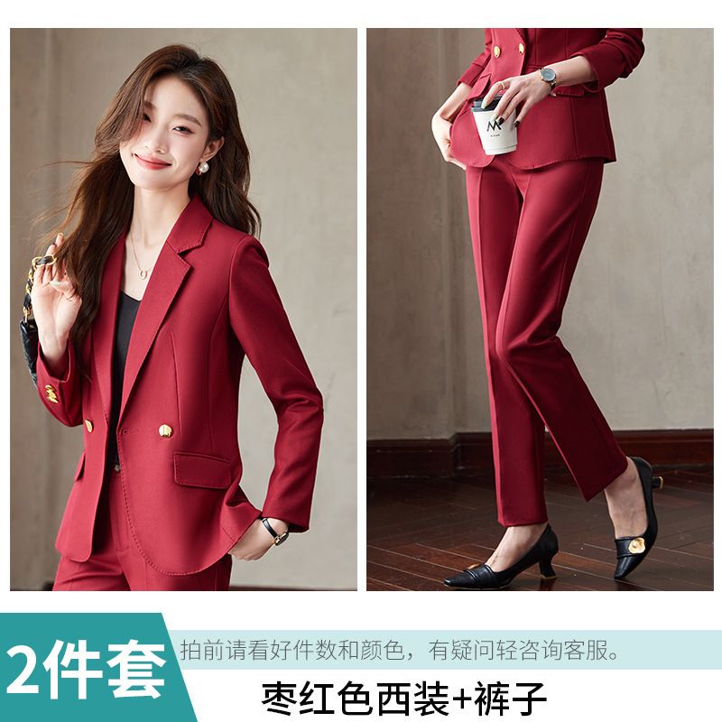 Jujube red,blazer+pants
