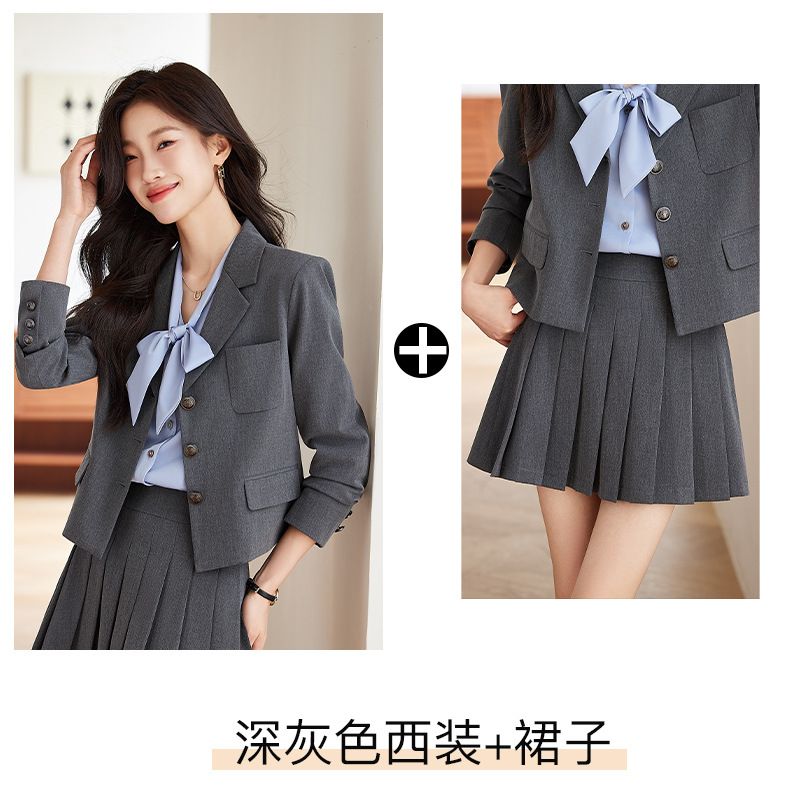 Dark gray,blazer+skirt
