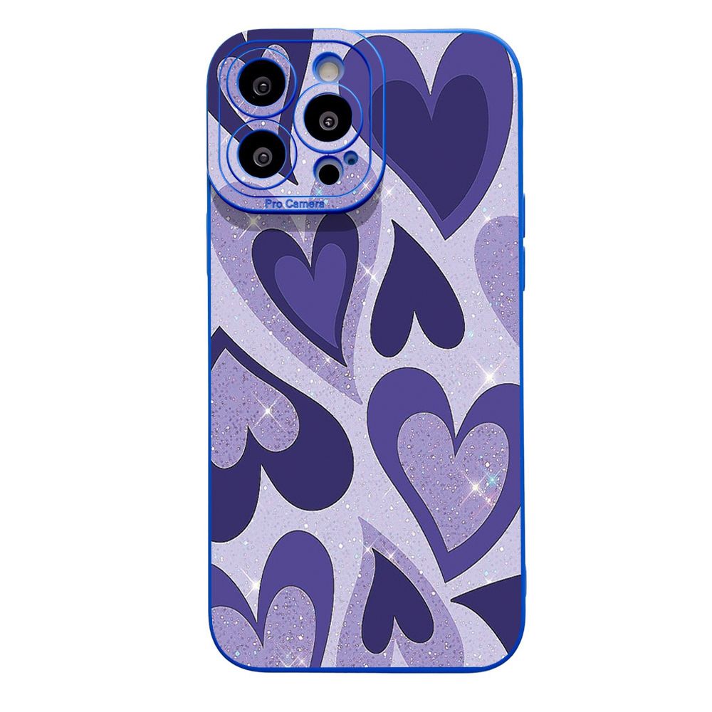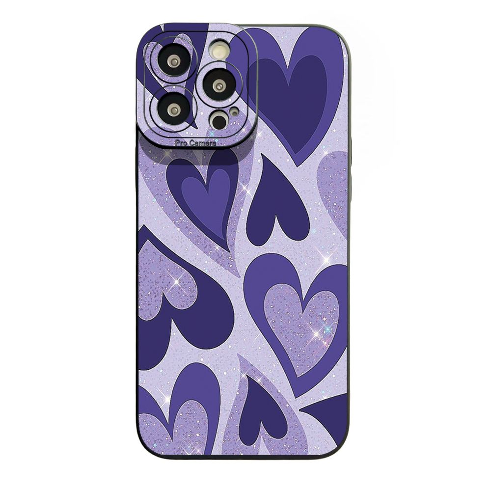 for iPhone 15 Pro Max 14 Plus 13 Pro Max 12 iPhone 11 XR 8 7 SE 2022 XS Max Liquid Purple Heart Full Protective Case Anti Drop Cover
