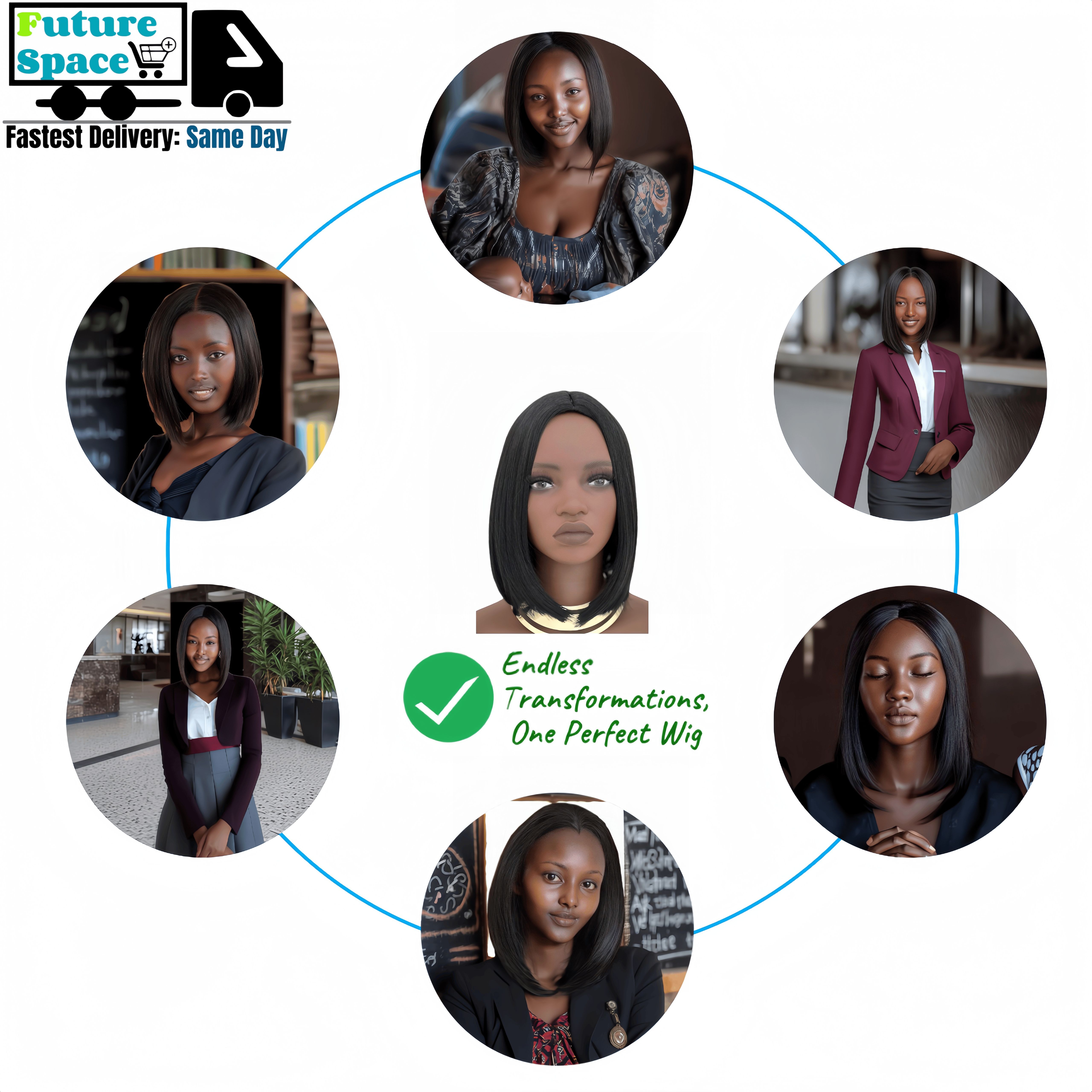 Synthetic Straight Bob Wigs - 12 Inch | 180% Density Natural Look(1B Black, Gift)