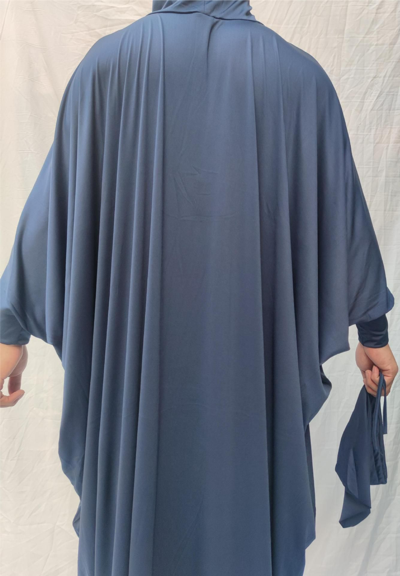 Muslim Middle East Solid Color Jersey Modest Fashion Bat Sleeve Hijab Robe Jilbab Abaya Islam Women Prayer Caftan Hooded Dress