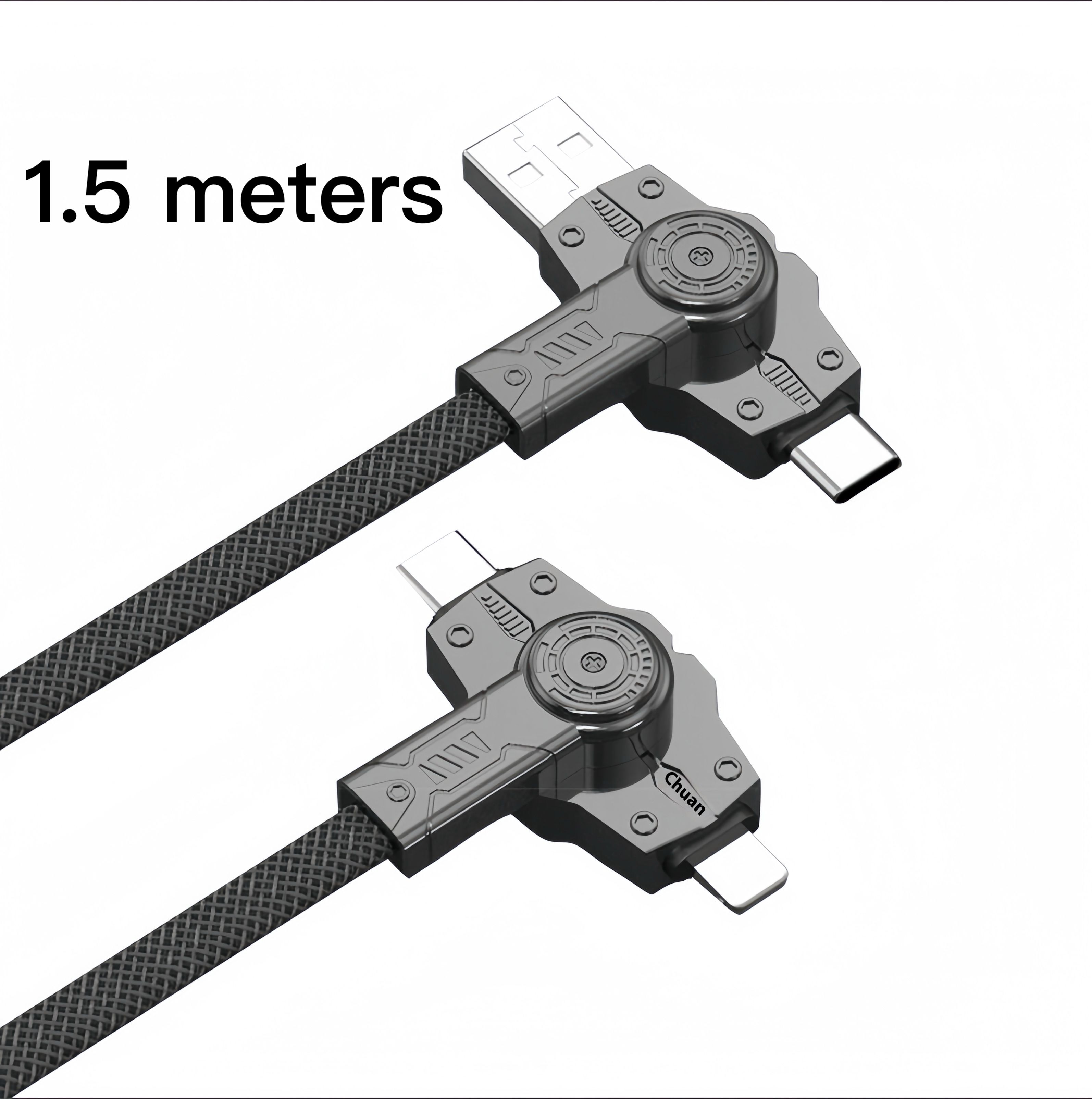 720° Rotating 65W+PD 27W 4-in-1 Fast Charging Cable