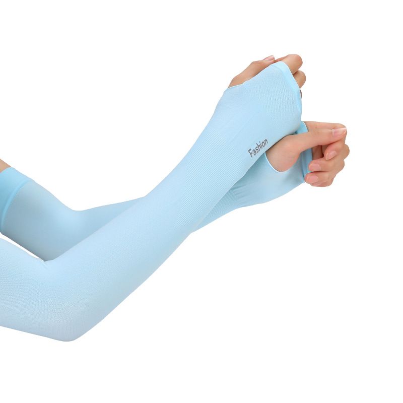 Long sleeve UV protective gloves Women's long ice silk sleeve men's driving arm sleeve half finger fingerless outdoor warm gloves