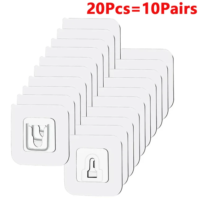 10 Pairs Double Sided Adhesive Wall Hooks Lnvisible Traceless Snap Hook Wall Storage Holder Bathroom Kitchen Bedroom Hook Kit