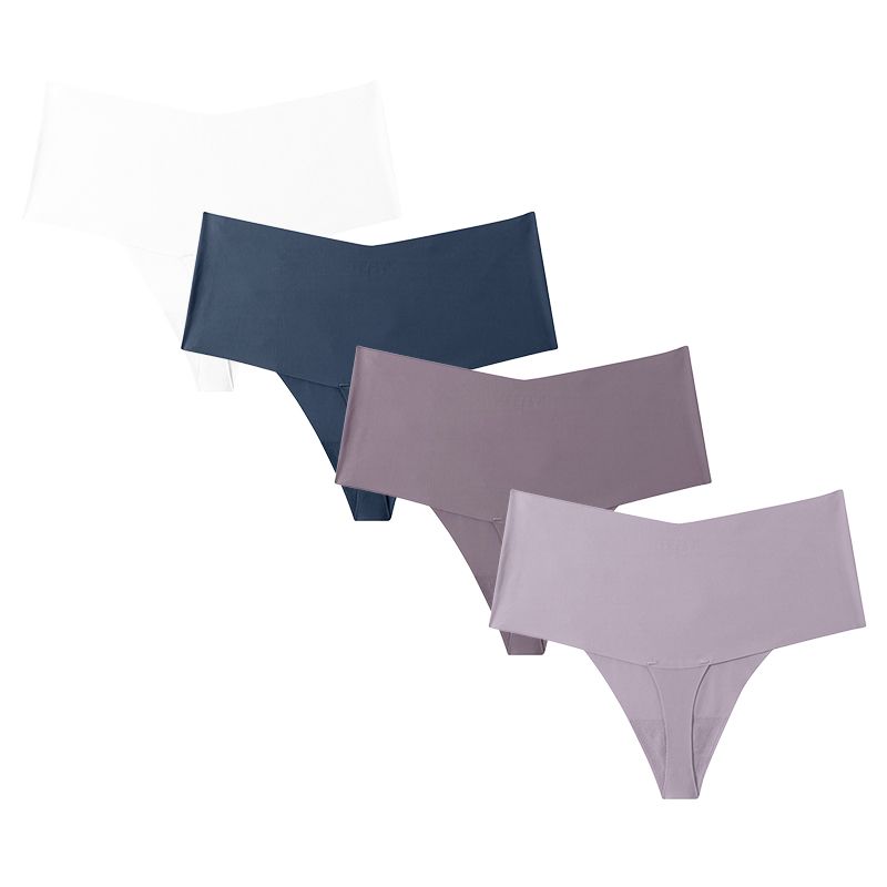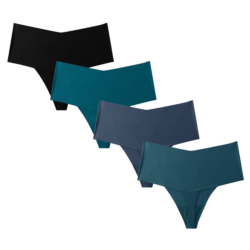 4 Pcs Women's Panties Laser Cut Ice Silk Panties V String Fitness Invisible Panties Interior High Waist Thong