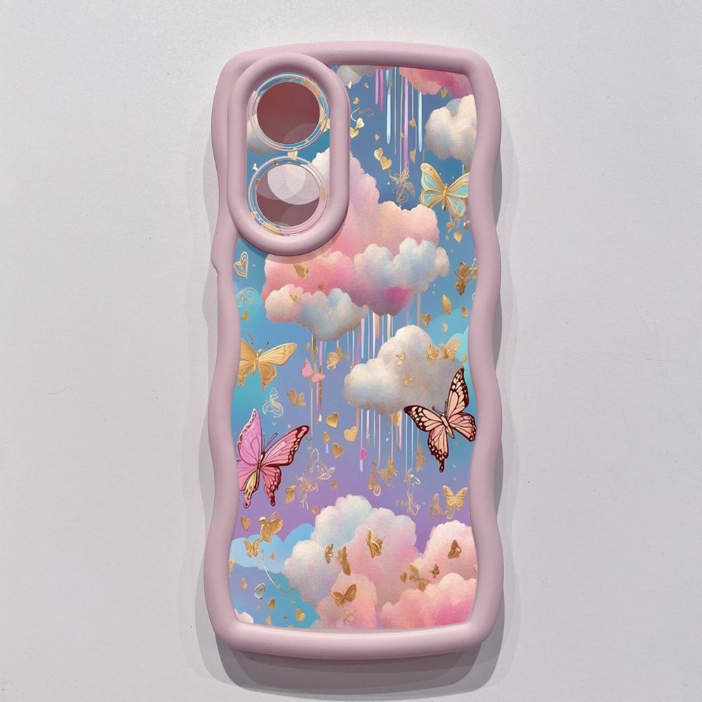 For OPPO A60 A18 A38 A17 A16 A57 A77 A59 A98 A78 A58 5G Luxury Butterfly Wave Frame Phone Case Anti Drop Cover