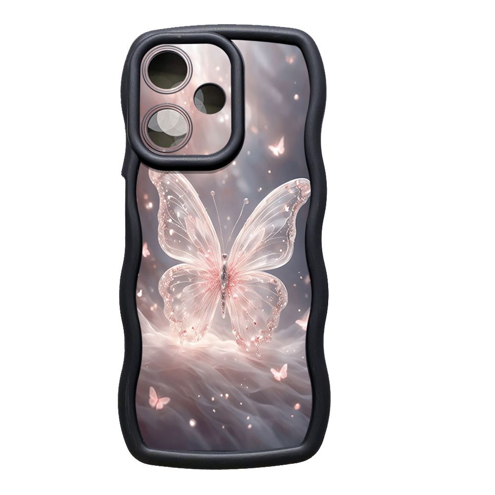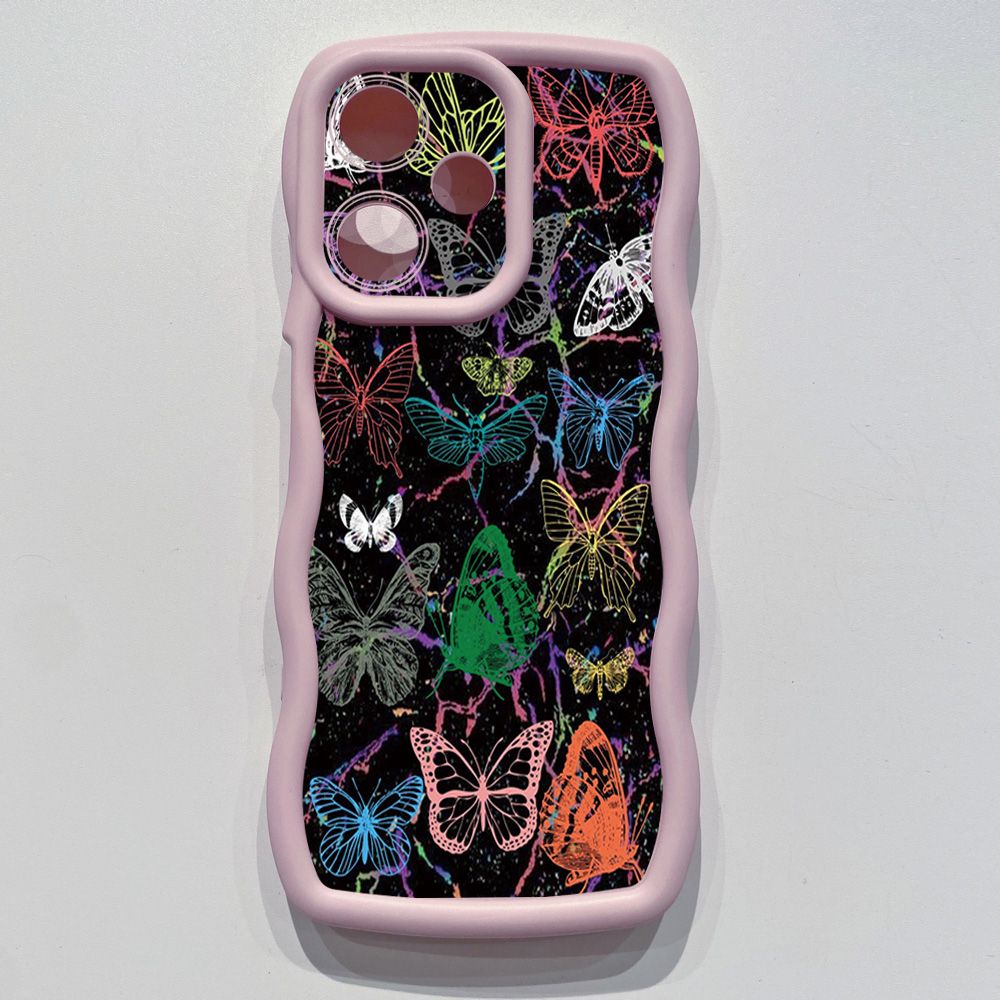 For Realme C67 C53 C51 Note 50 C21Y C25Y C33 C30 C35 9i Colorful Pink Crystal Butterfly Wave Frame Phone Case Anti Drop Cover