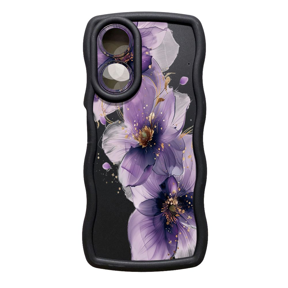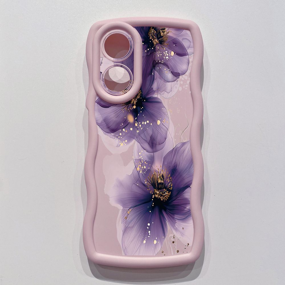 For OPPO Reno 5 6 Lite 7 8 Reno 7Z 8 Z 5F F19 F21 Pro Purple Golden Flower Wave Frame Phone Case Anti Drop Cover