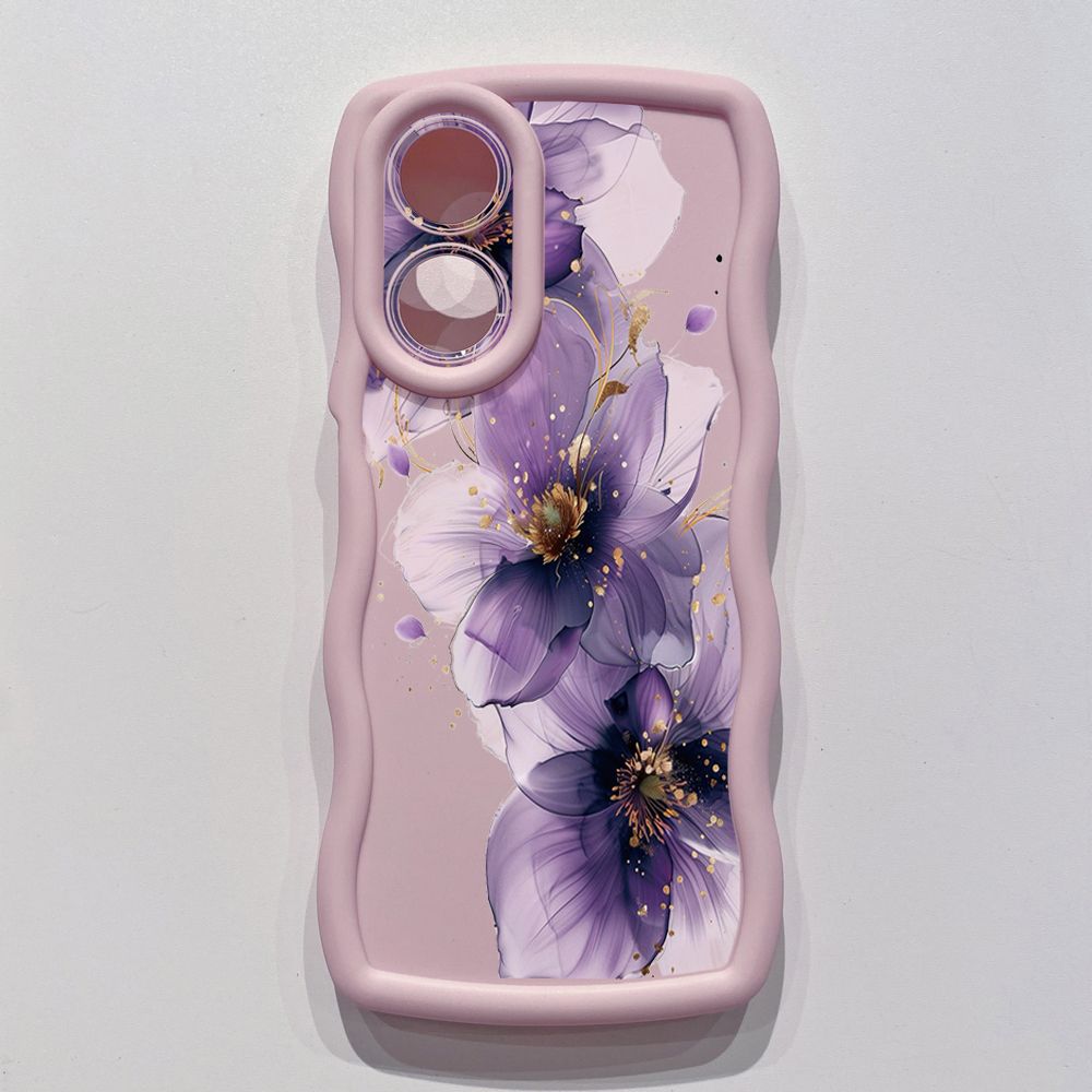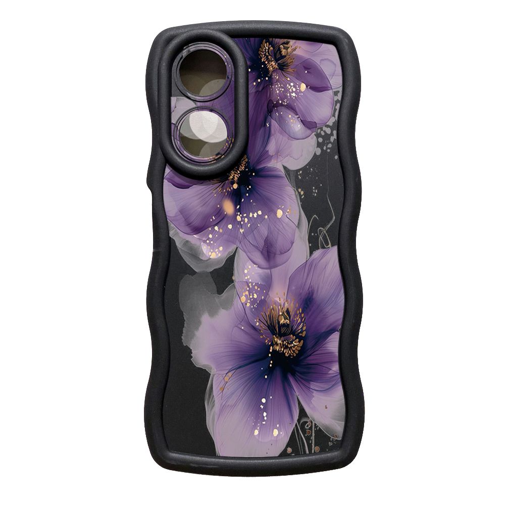 For OPPO A60 A18 A38 A17 A16 A57 A77 A59 A98 A78 A58 5G Purple Golden Flower Wave Frame Phone Case Anti Drop Cover