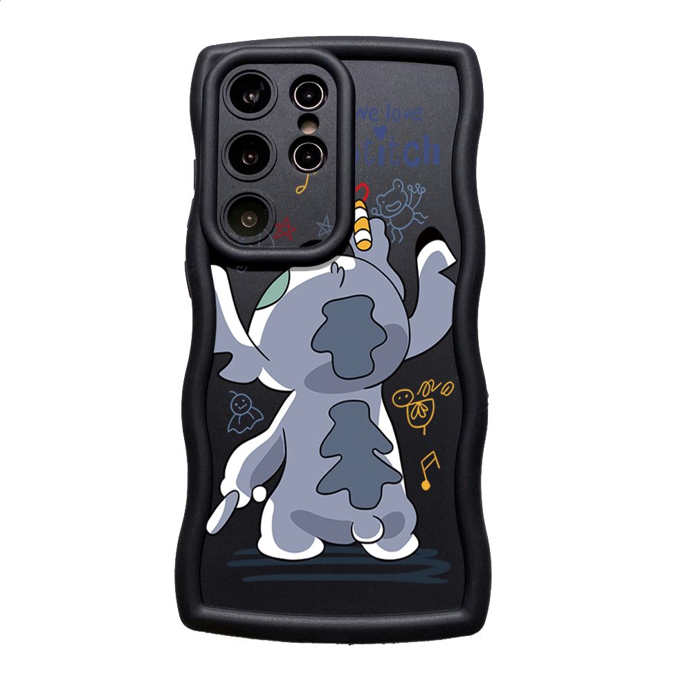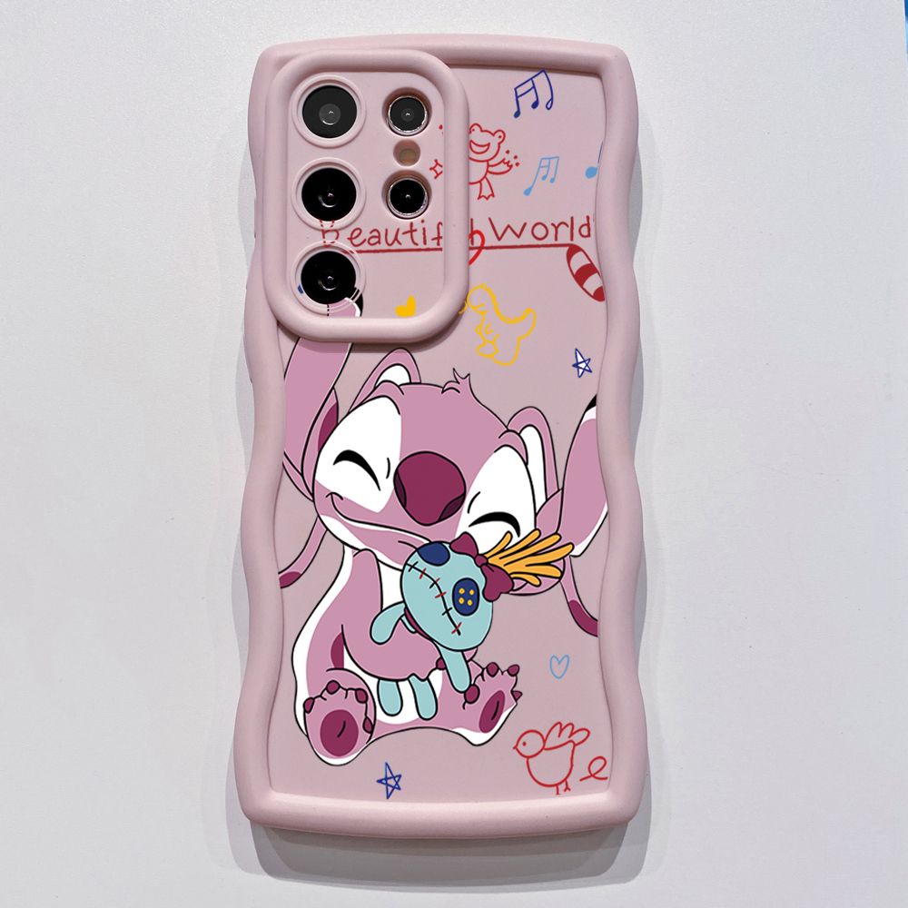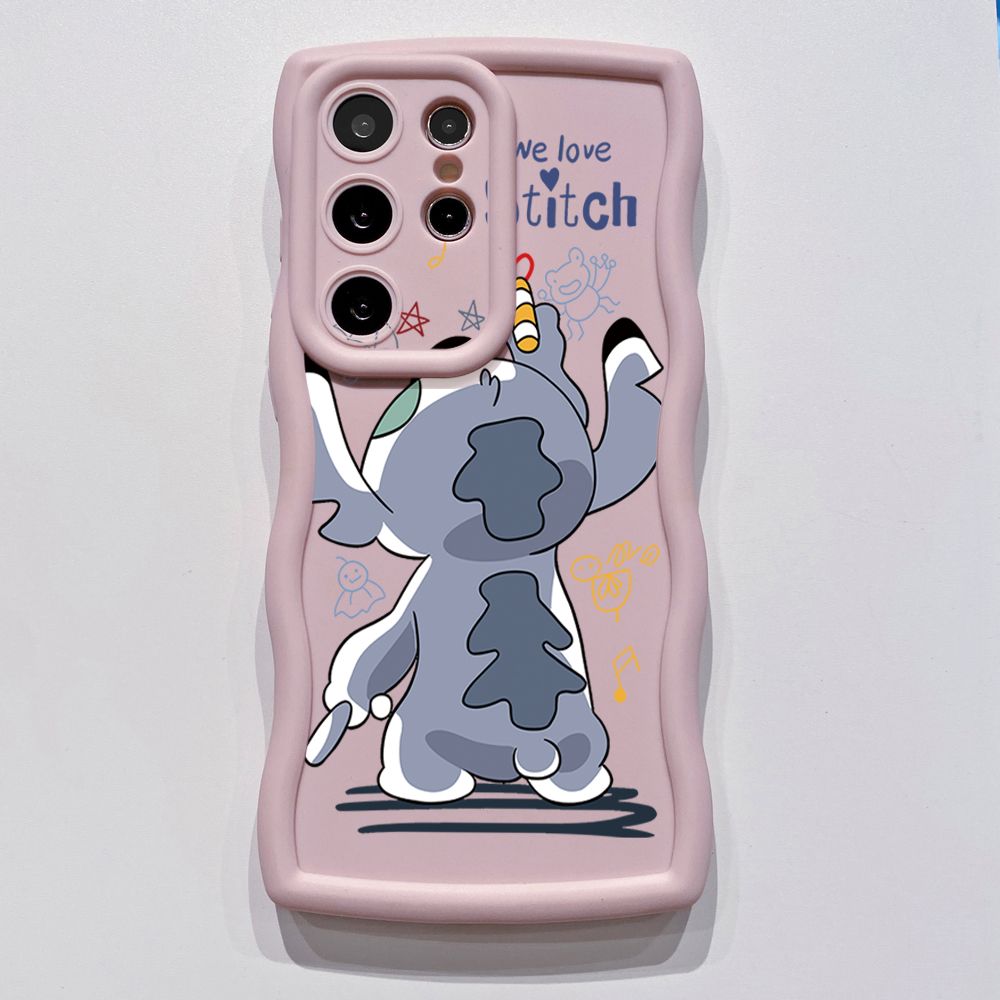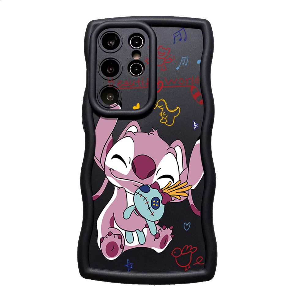 For Samsung Galaxy S24 S23 Ultra S22 Plus S21 FE S20 Lovely Couple Stitch Wave Frame Phone Case Anti Drop Cover