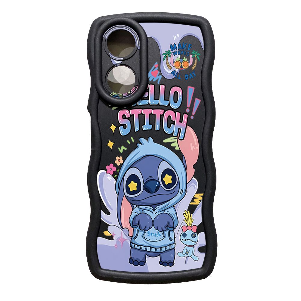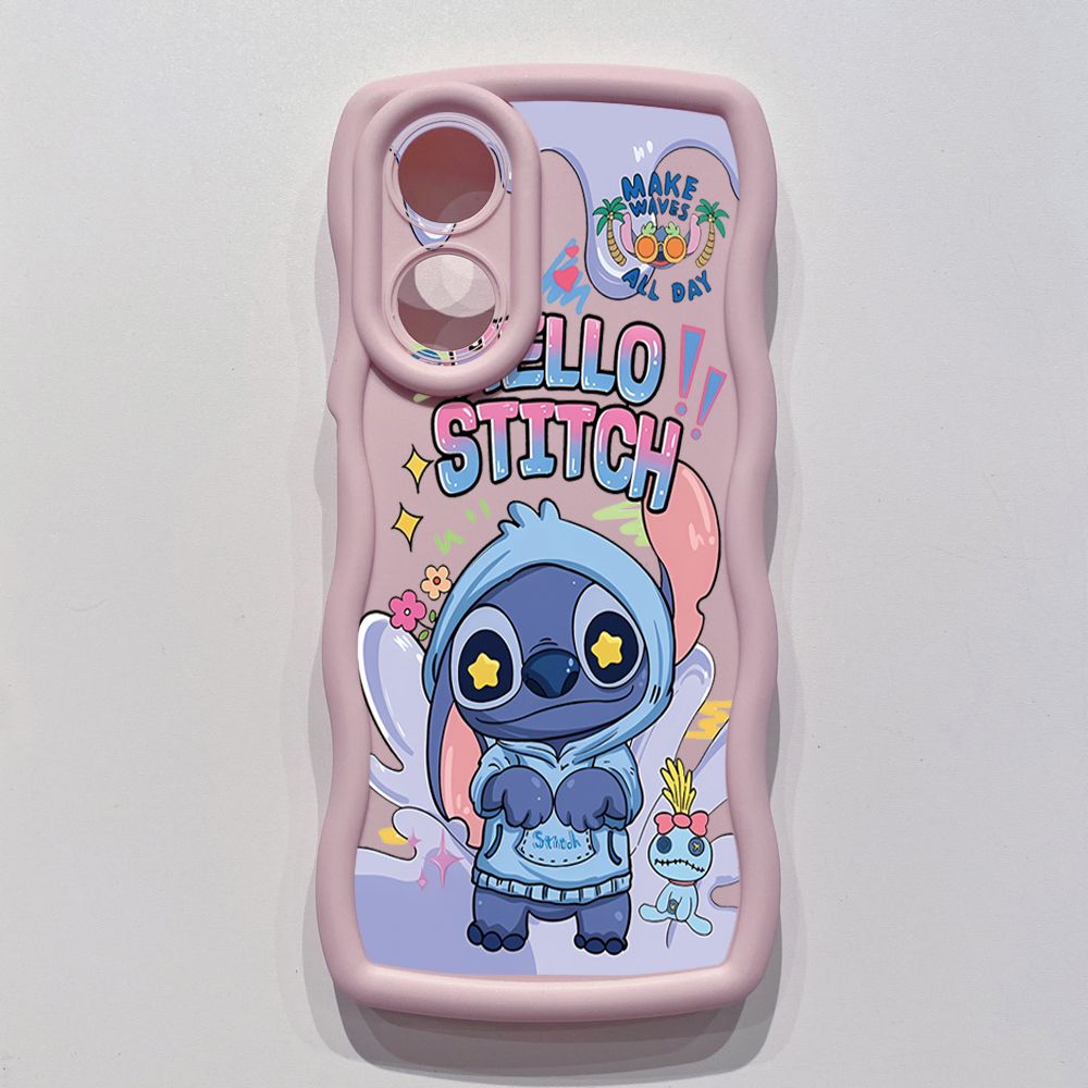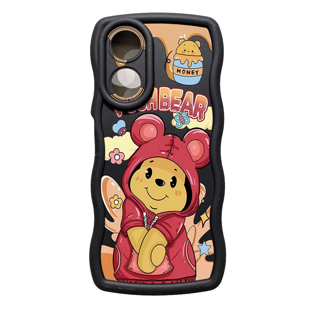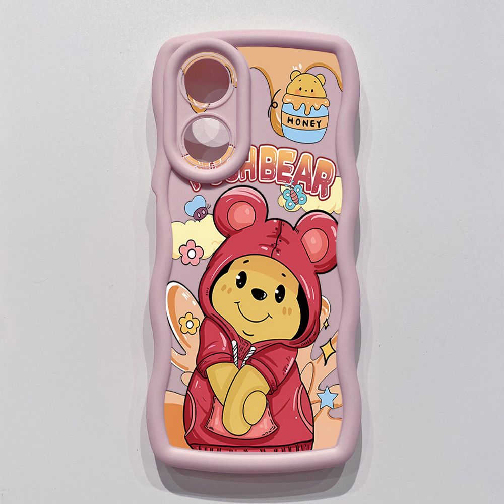 For OPPO A60 A18 A38 A17 A16 A57 A77 A59 A98 A78 A58 5G Pooh Bear Stitch Wave Frame Phone Case Anti Drop Cover