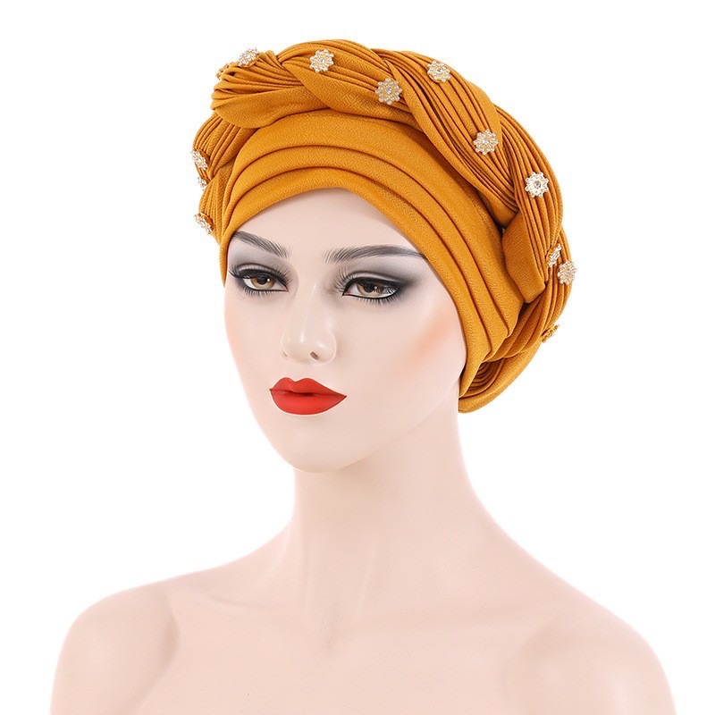 Multilayer Diamonds Braid Turban Caps Women Muslim Headscarf Bonnet Female Headwrap Hat Ready to Wear African Auto Gele Headtie