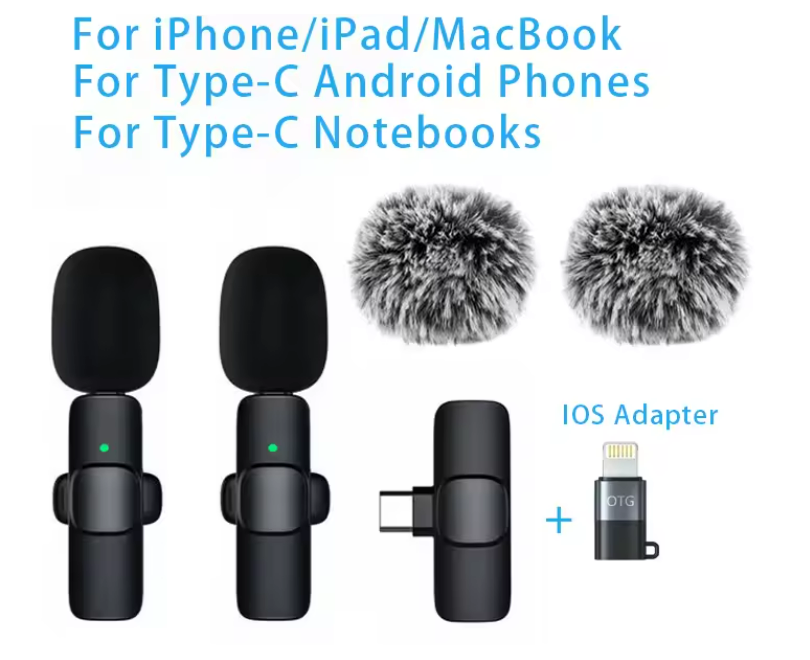 NEW Wireless Lavalier Microphone Audio Video Recording Mini Mic For iPhone Android Laptop Live Gaming Mobile Phone Microphone