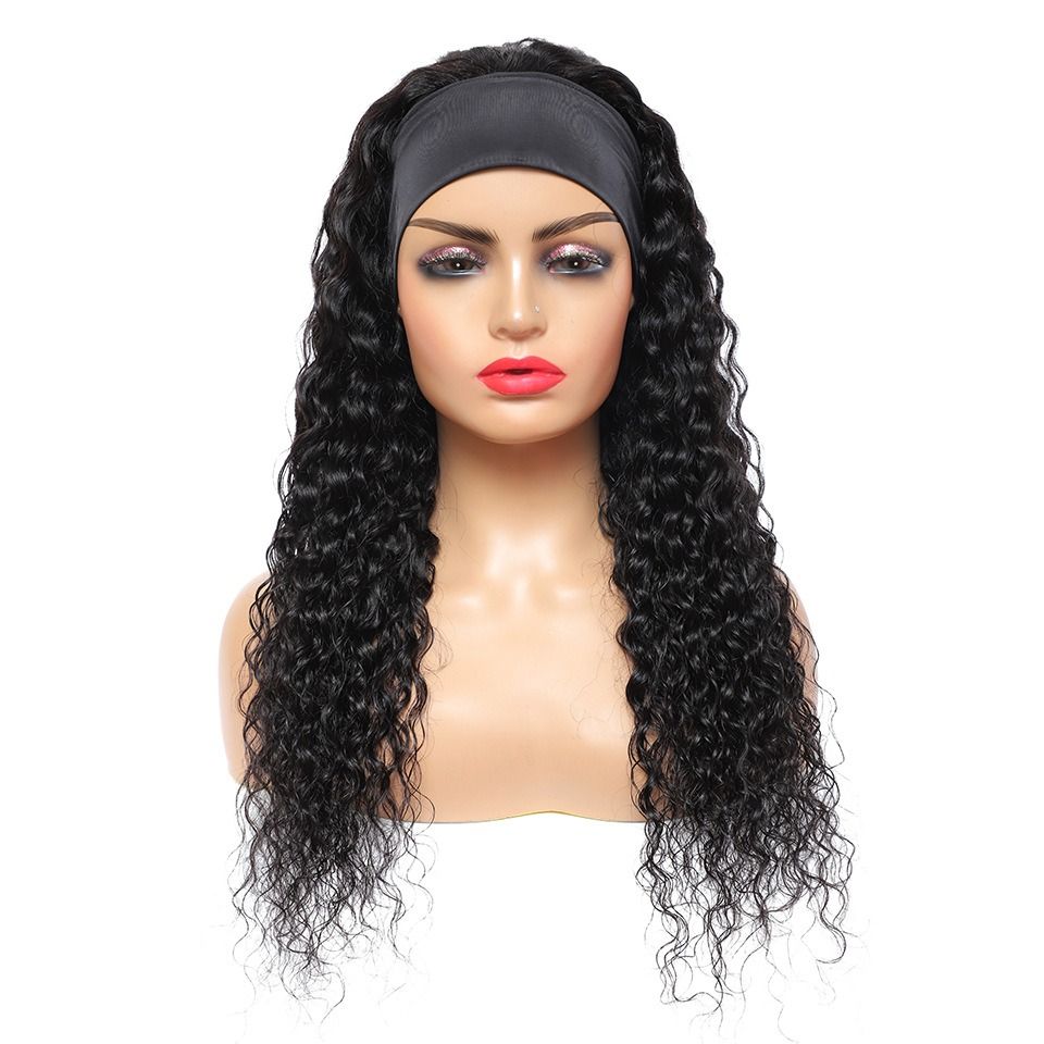 Wavy Headband Wigs (+ 1 headband free gift) Human Hair Brazilian Virgin Hair Water Wave Headband Wigs for Black Women 150% Density Glueless Non Lace Front Wigs Half Wig with Headband Curly Hair band