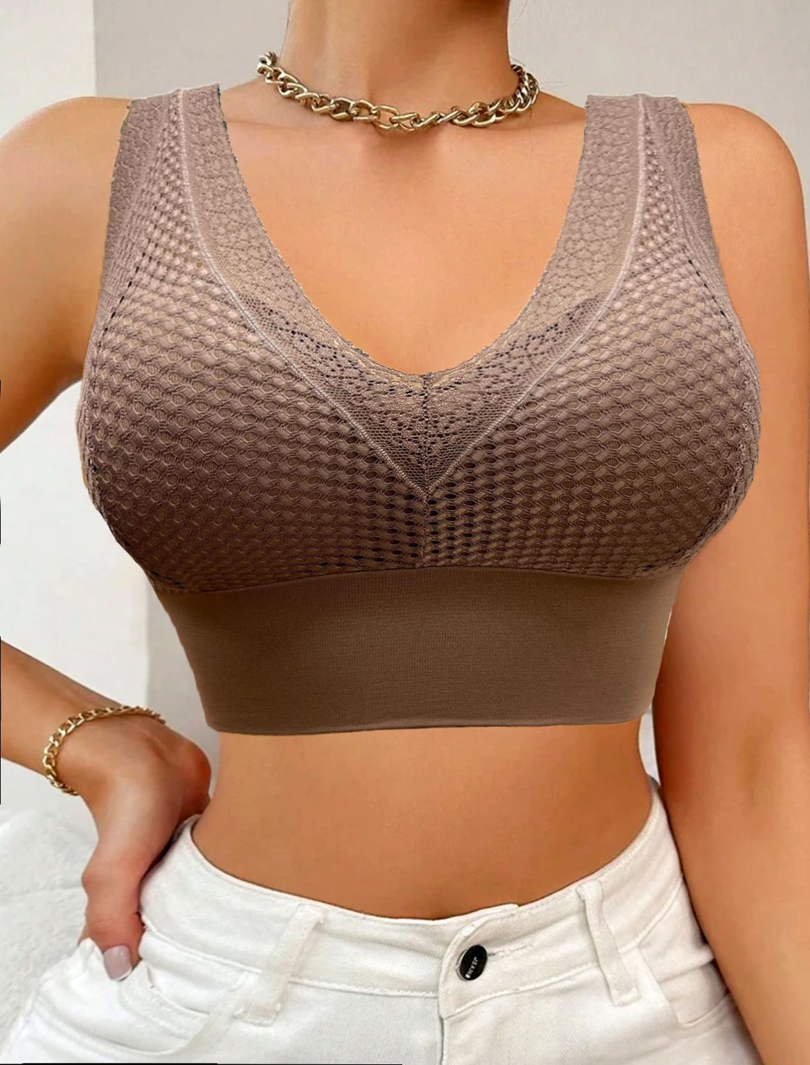 New Arrival Brassiere  Elegant Mesh Non-removable Thin Foam Vest Bra Wide Shoulder Strap
