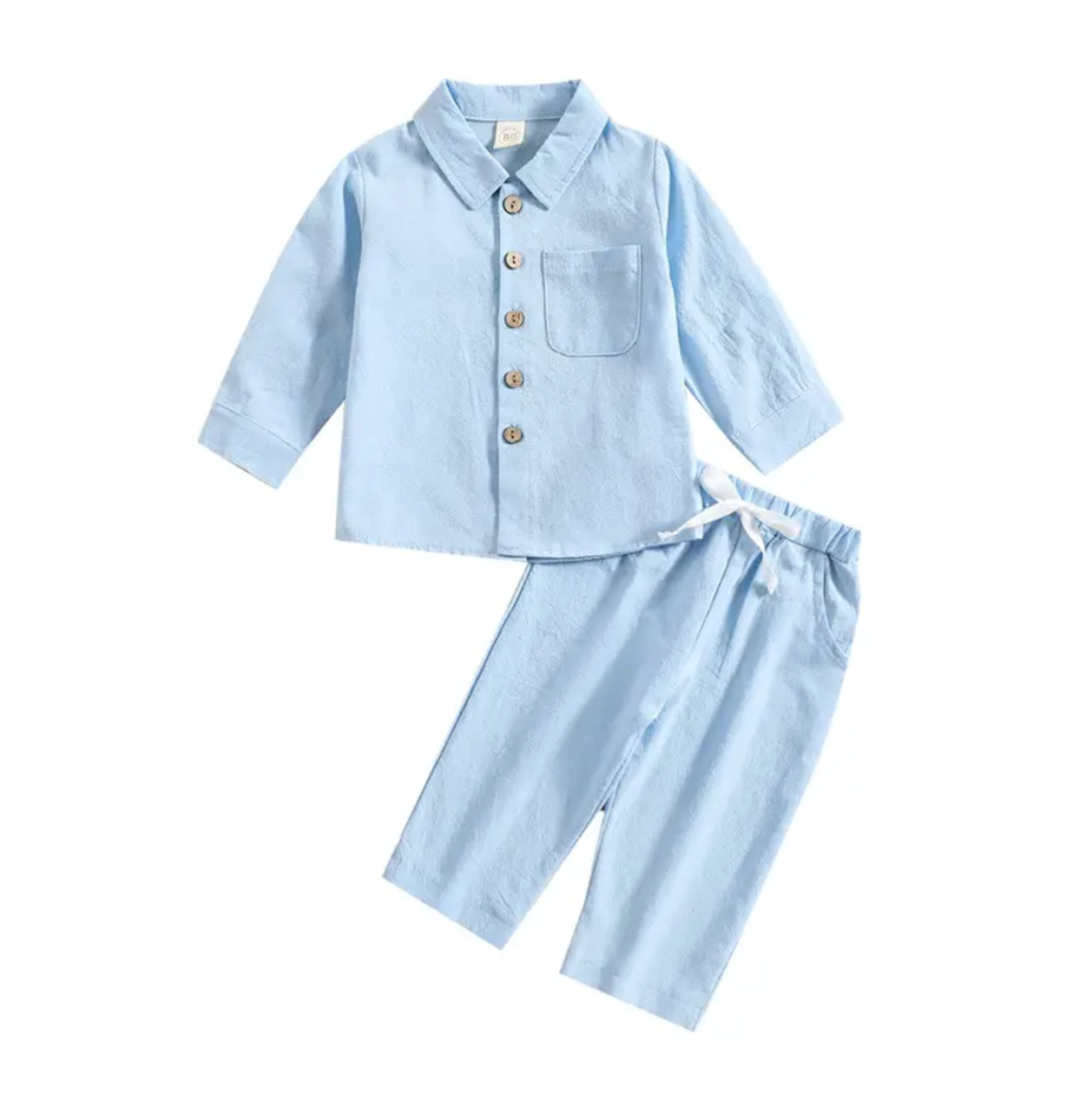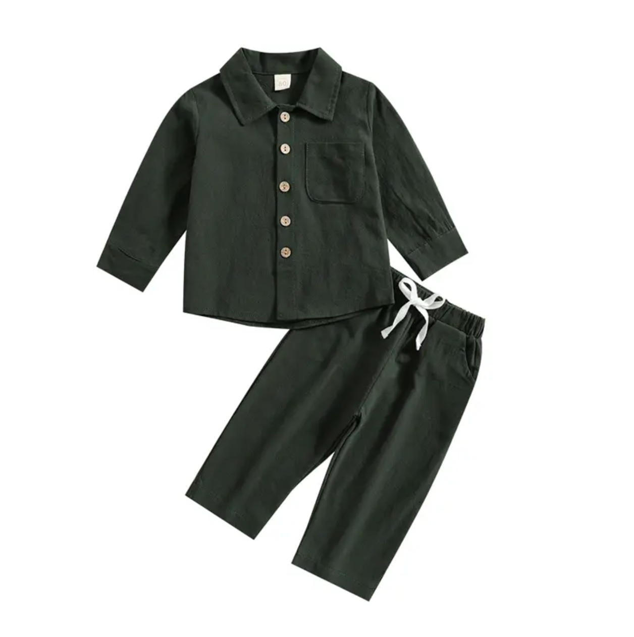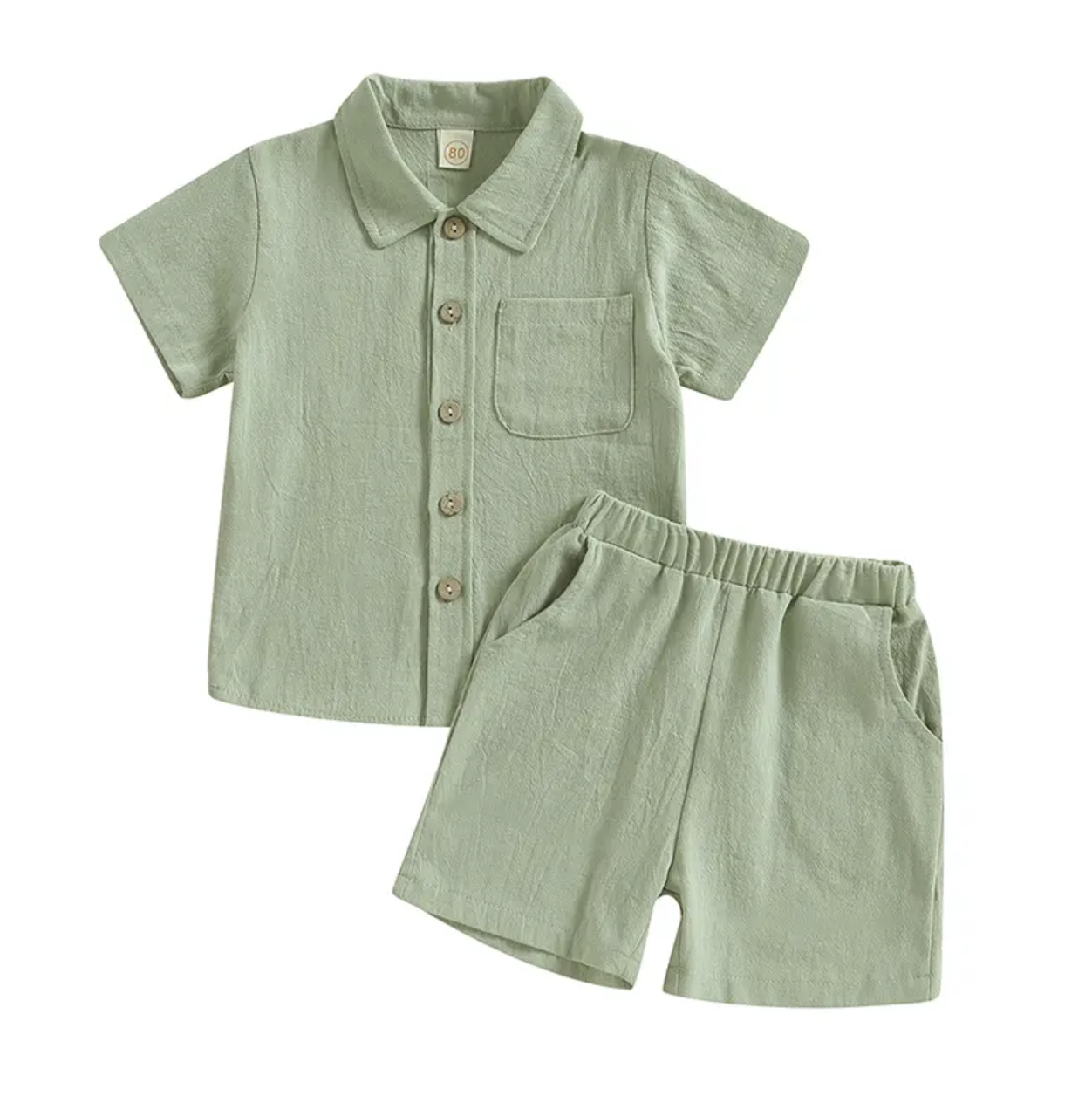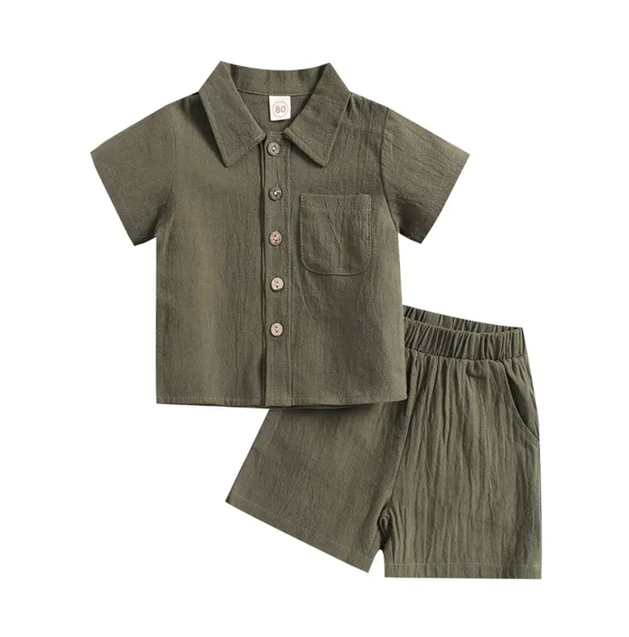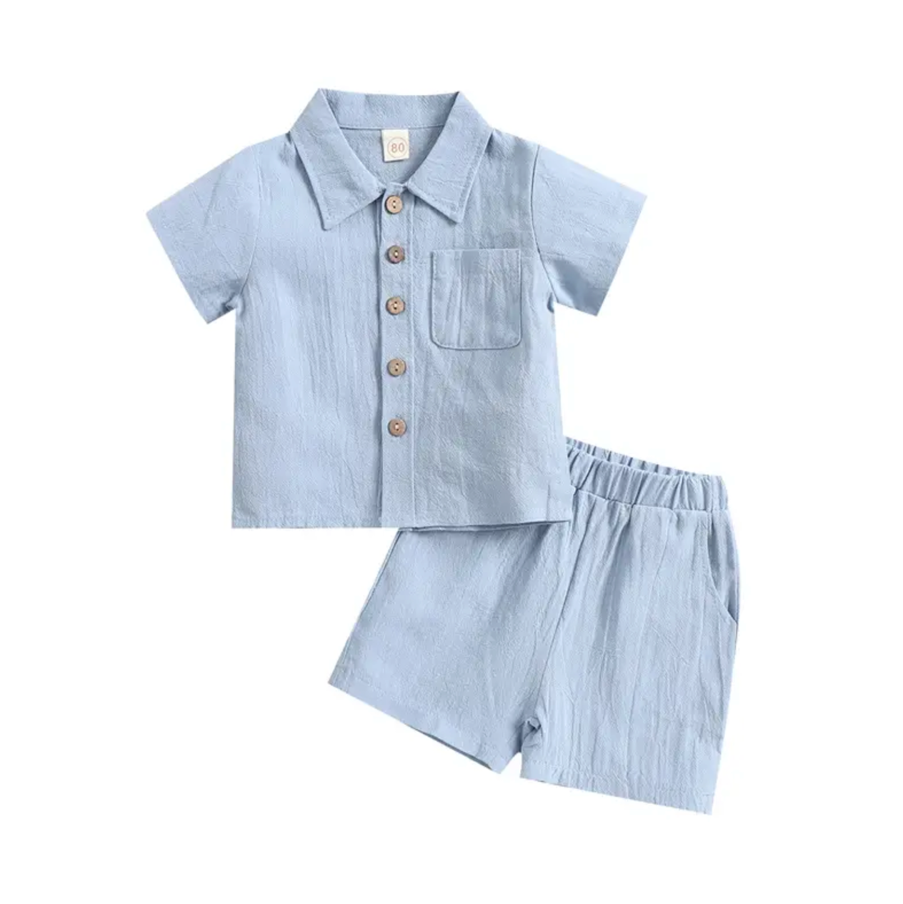 2Pcs Little Boys Outfit, Toddlers Summer Solid Color Lapel Short Sleeve Single-breasted Shirt Tops +Elastic Waist Shorts
