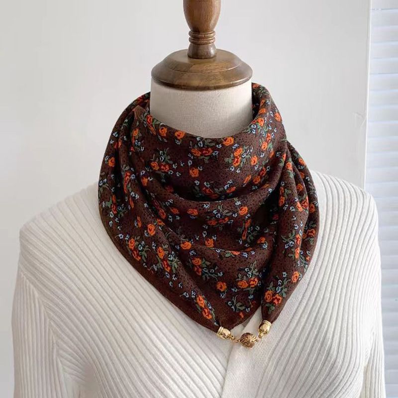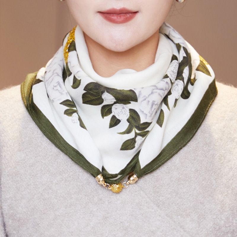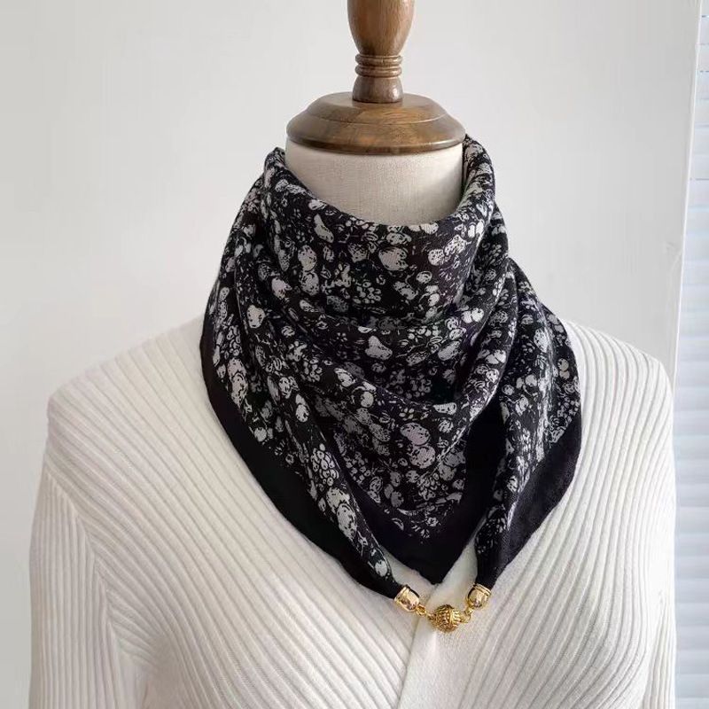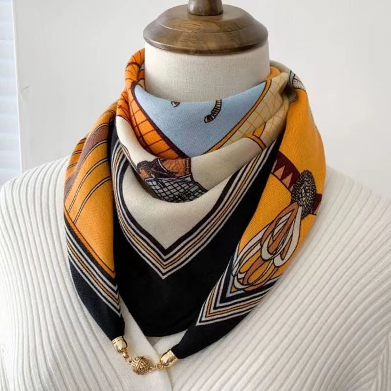 New 65 square magnetic women's printed silk cotton scarf Triangle bib stylish stylish silk scarf