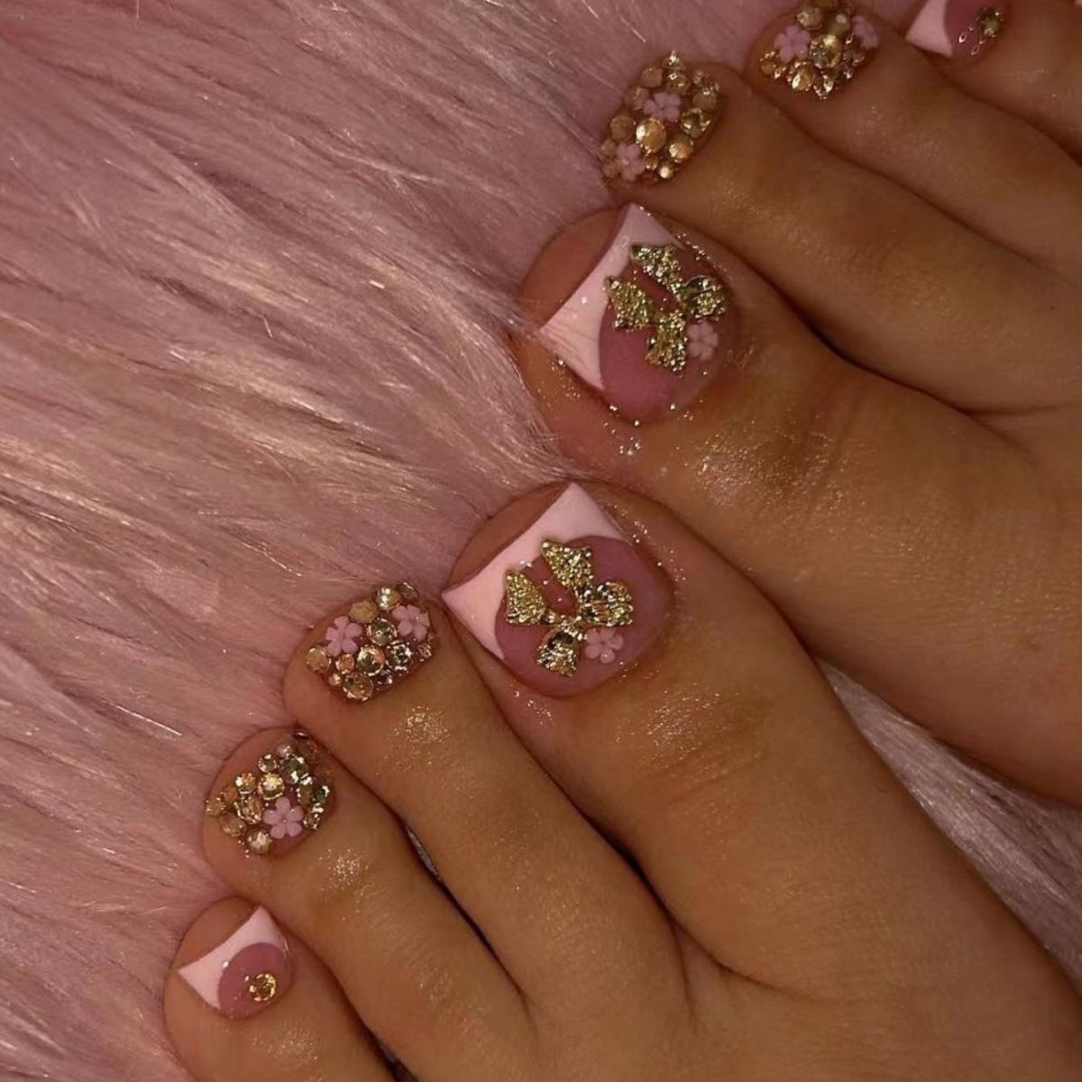 24Pcs False Toes Nails French Square Nude Color Nature Fake Toe Nails Feet Nail Tips Artificial Press On Toenails for Women 2025 E0126