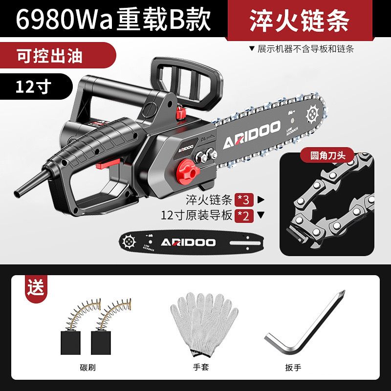 2.4KW 12 Inch Heavy-Duty Electric Chainsaw | Wood Cutting Machine | 3 Hardened Chains + 2pcs 12" Guide Bars | Handheld Woodworking Saw,Brushed pure copper motor