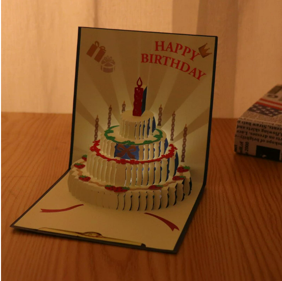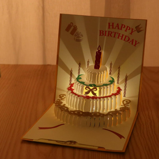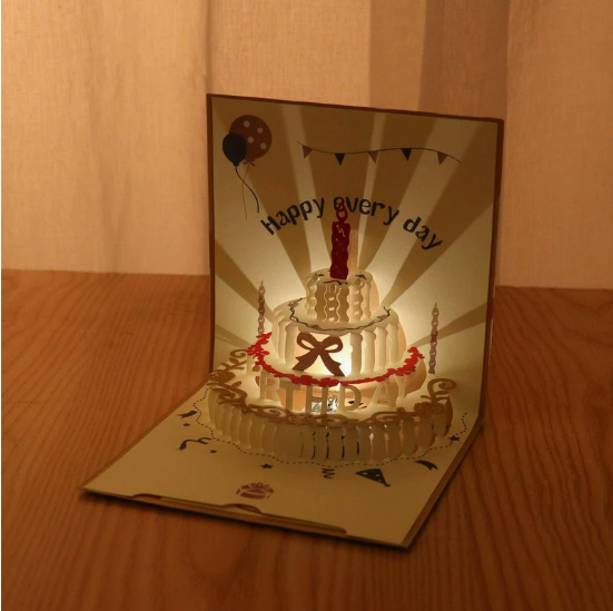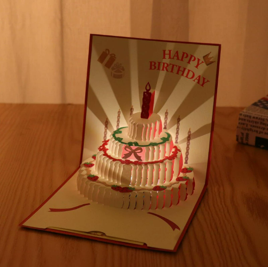 3D Light Music Birthday Card Pop Up Cake Creative Greeting Card Happy Birthday Party Gift Message Cards