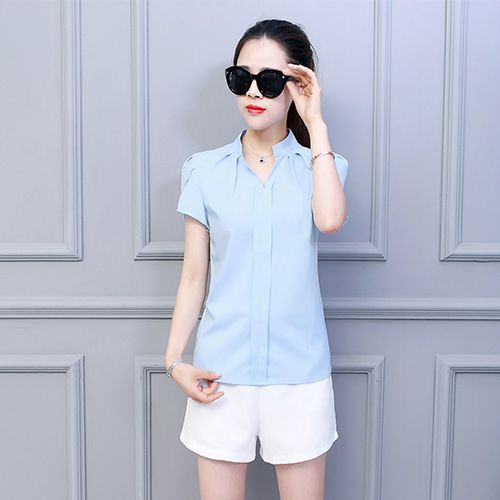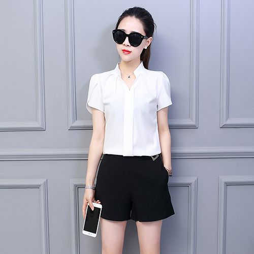 Spring and summer new female Hanfan shirt fashion slim large size short sleeve white lotus sleeve snow ladies spinning shirt