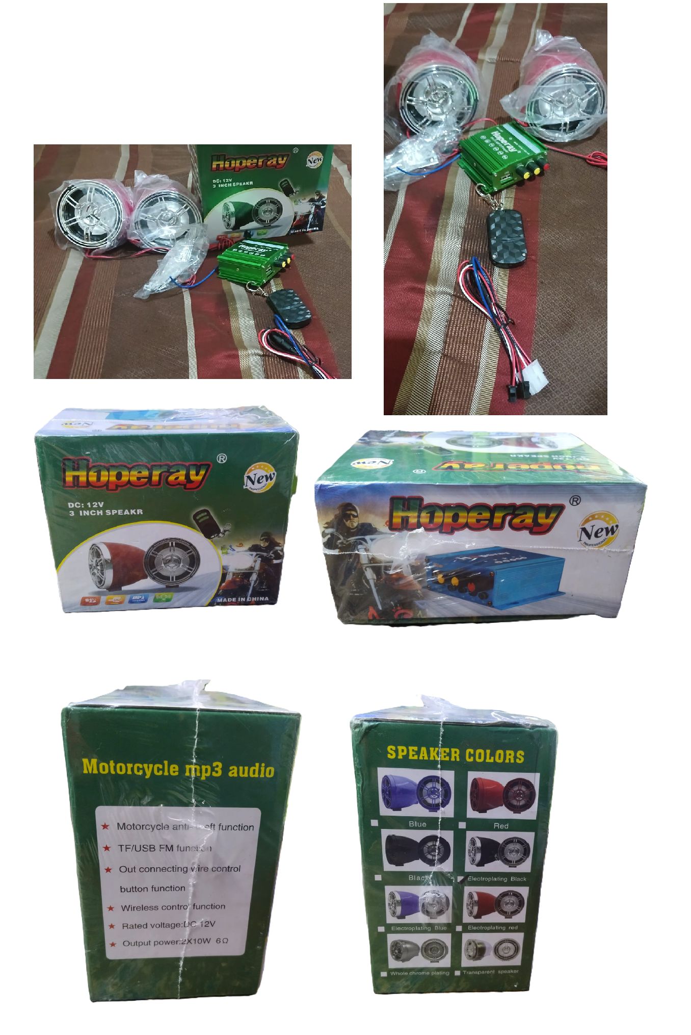 Hoperay Motorcycle Audio Mp3 Player; 3 Inch Speaker, DC: 12v.