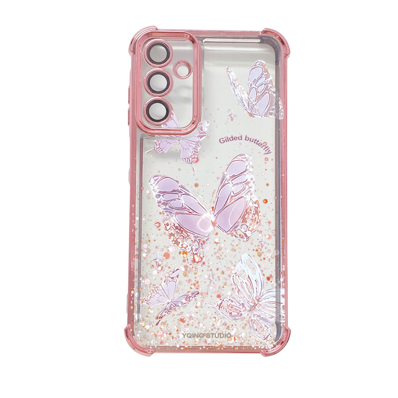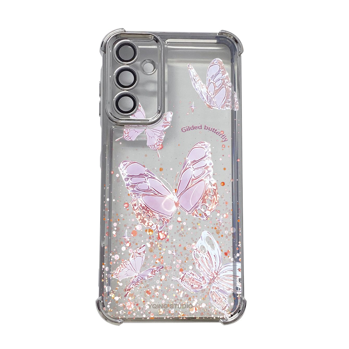 For Samsung Galaxy S25 S24 S23 Ultra S22 Plus S21 FE S20 Beauty Luxury Butterfly Plating Frame Clear Phone Case Anti-shock Cover
