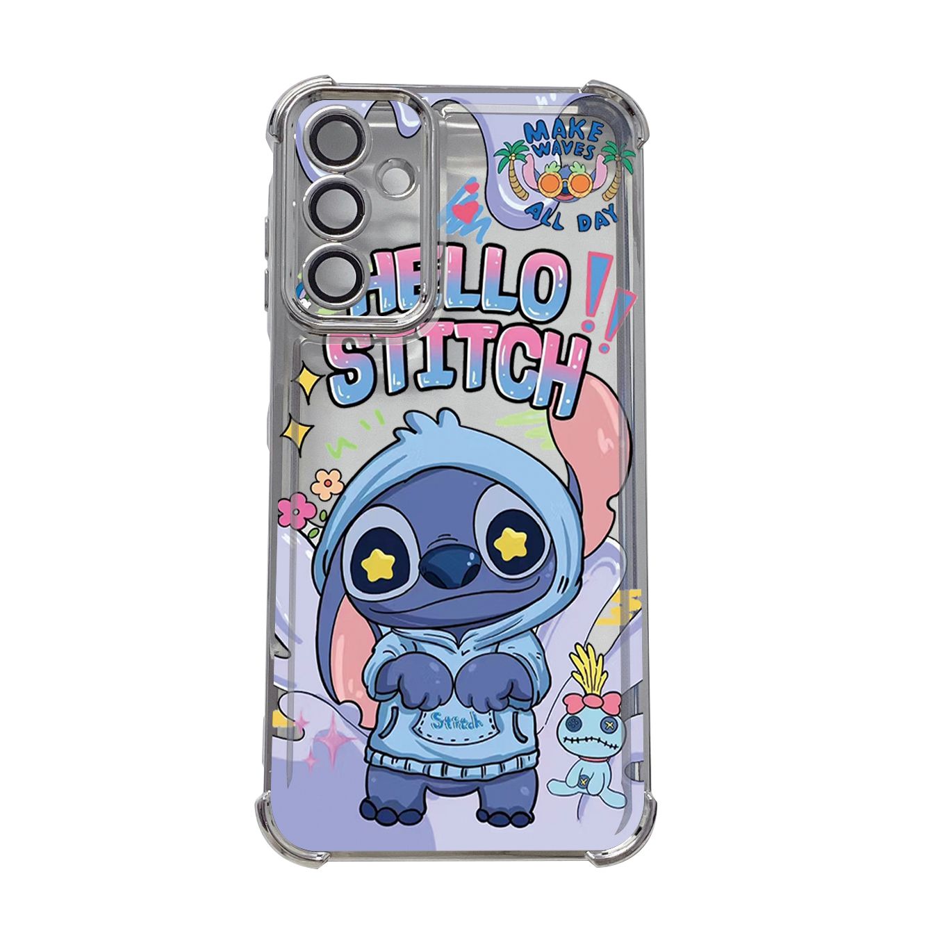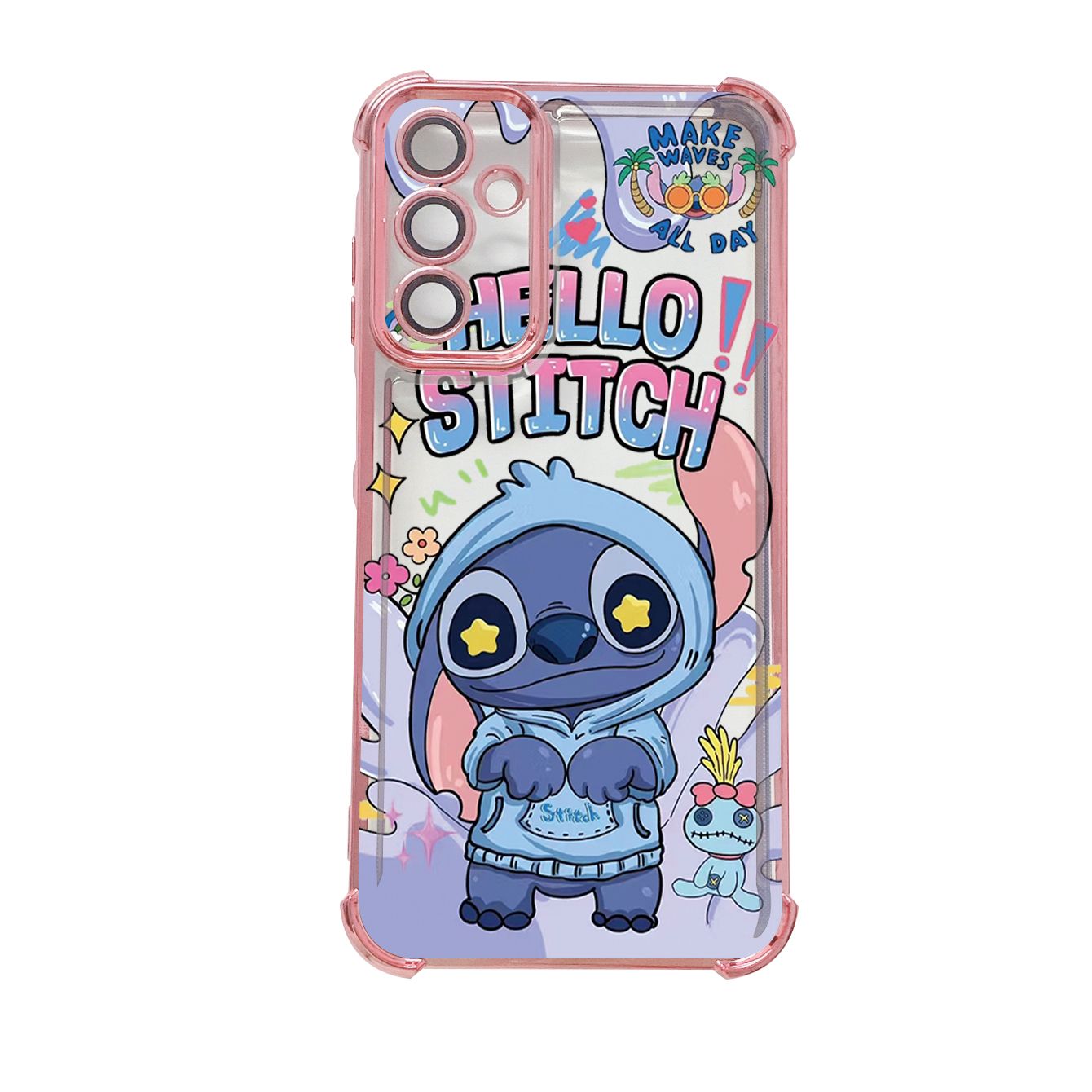 For OPPO A3X A2 Pro A1 A60 A18 A38 A17 A16 A57 A77 4G A59 A98 A78 A58 5G Stitch Angel Couple Plating Frame Clear Phone Case Anti-shock Cover