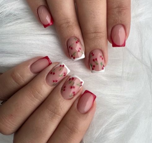 24Pcs/set Medium Length French Fake Nails Blue Pink Halo Glossy False Nail Artificial Acrylic Press On Nails Art tips Removable E0110
