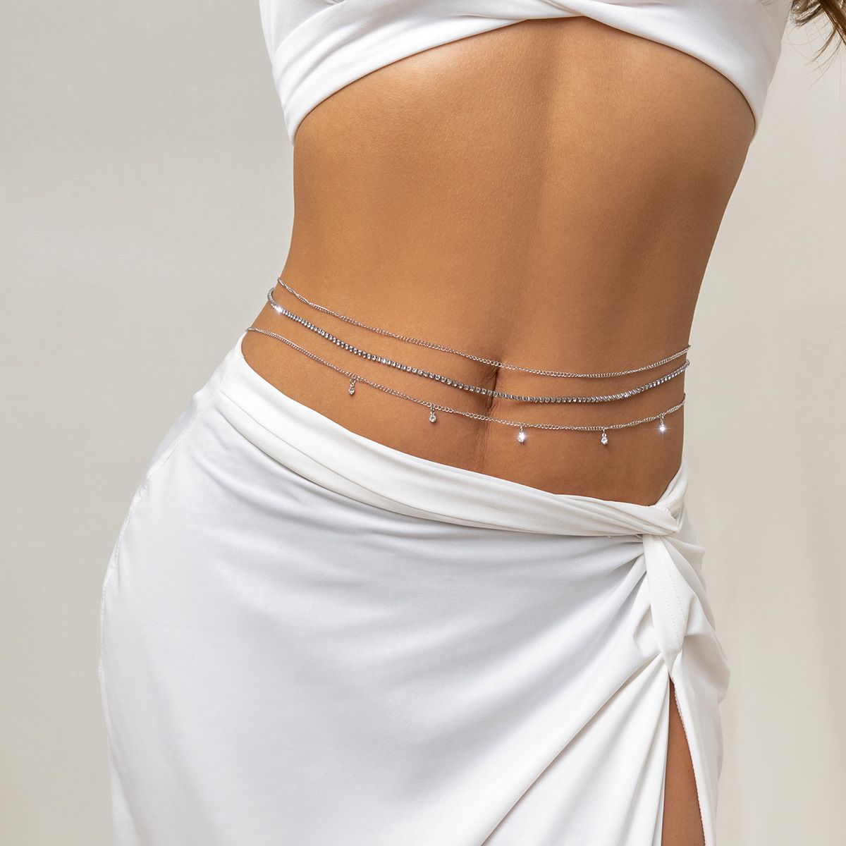 Sexy Layered Tassel Sequin Metal Chain Waist Belt Trendy Beach Body Chain with Rhinestone Heart Detail Women's Body Jewelry