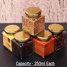 5 pcs, 250ml Square-Shaped Mason Glass Jars with Airtight Lids – Stylish Storage for Spices, Snacks, Smoothies & More | Vintage Look, Modern Utility