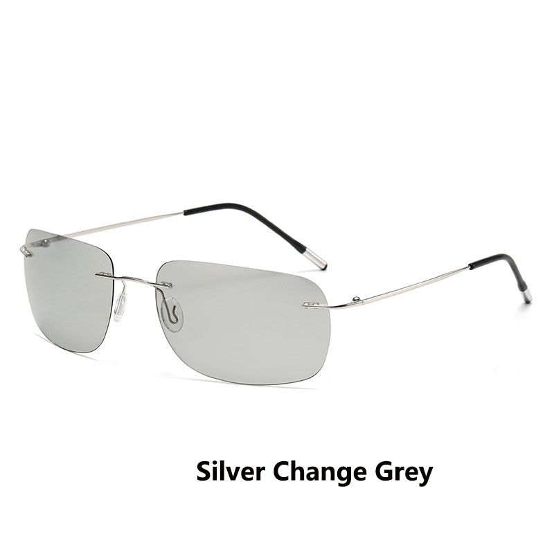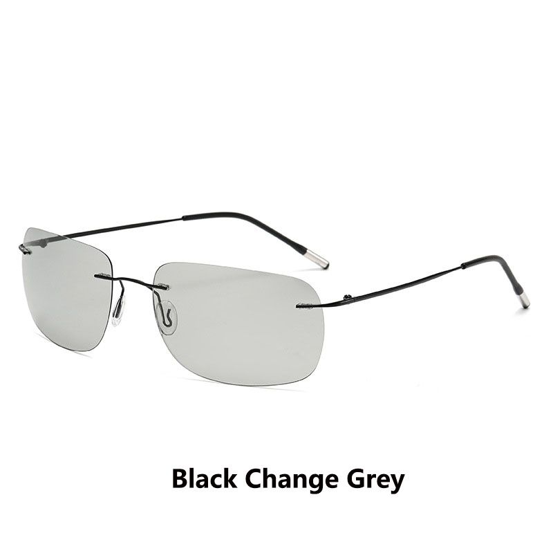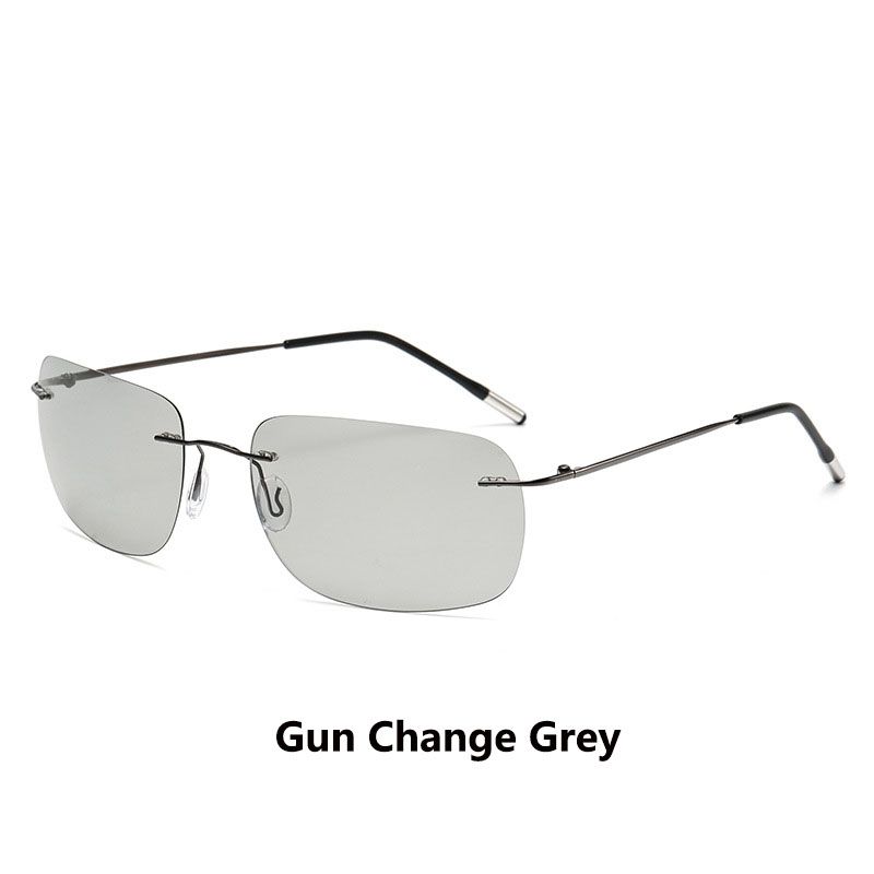 Pilot Polarized Sunglasses Men Rimless Titanium Alloy Ultralight Sunglasses Men Driving Sports Fishing Photochromic Lens Glasses