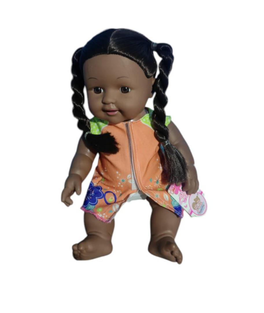 AFRICAN DOLL BLACK BABY DOLL, AFRICAN BLACK GIRL DOLL WITH DRESS, REALISTIC REBORN BABY DOLL FOR KIDS AGED 2 3 4 5 6, SILICONE SMALL BLACK DOLL TOY WITH LONG HAIR FOR BIRTHDAY GIFT