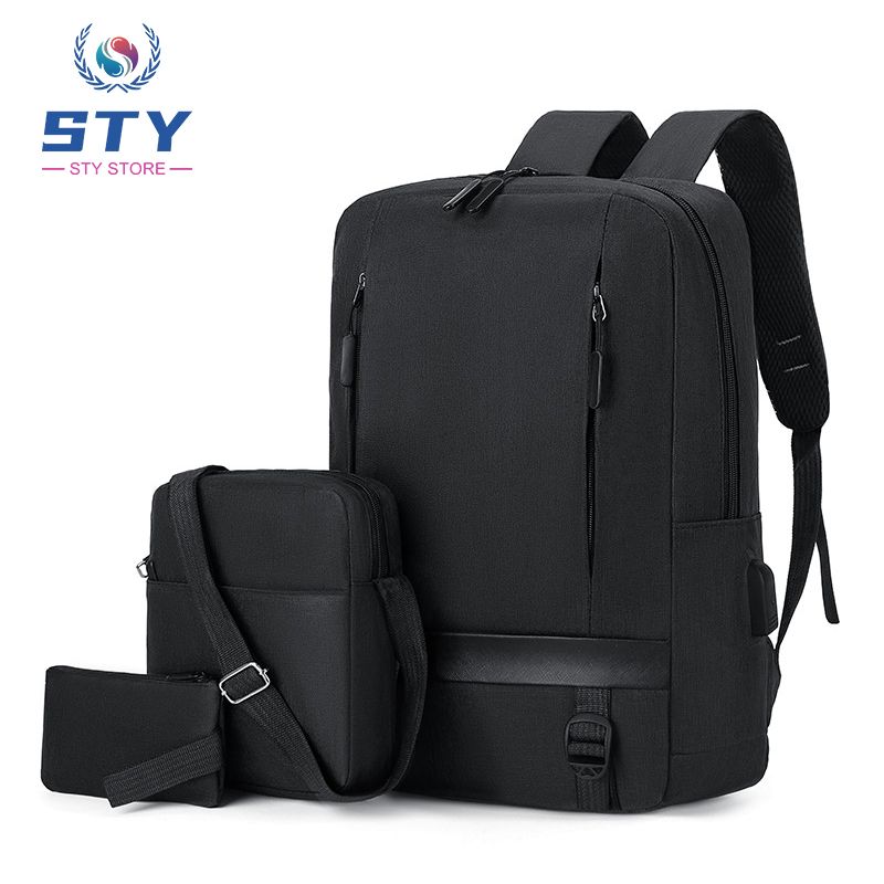 New Arrival 3 Pcs Men Backpack Cross-body Bag Small Bag Set Simple Rucksack School Bag