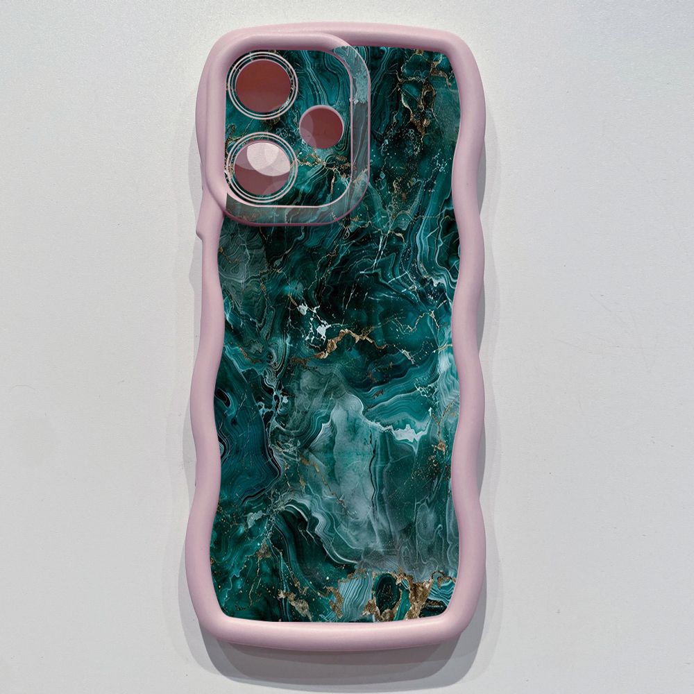 For OPPO Realme C67 C53 C51 Note 50 C21Y C25Y C33 C30 C35 9i Green Marbling Wave Frame Phone Case Anti Drop Cover