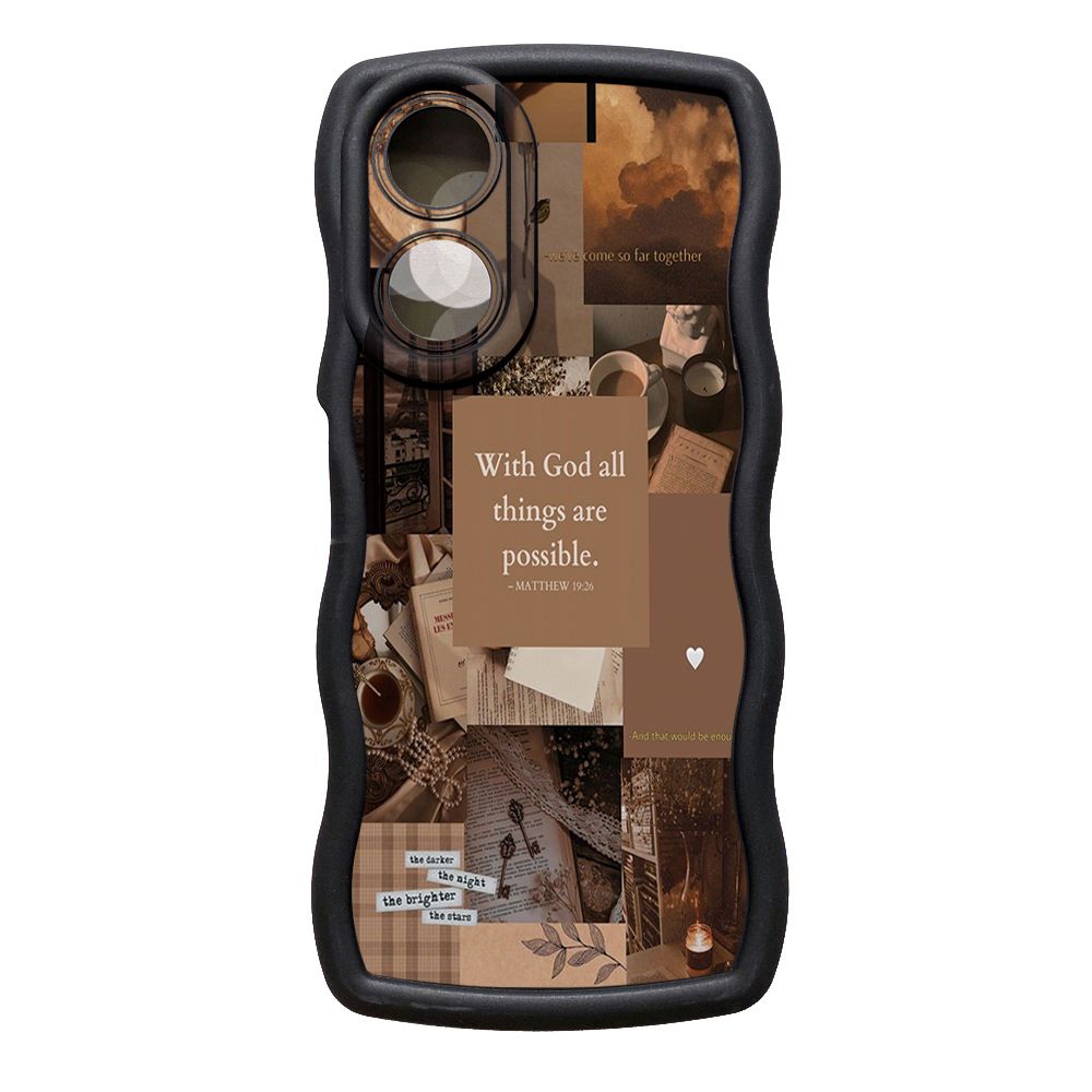 For OPPO A60 A18 A38 A17 A16 A57 A77 A59 A98 A78 A58 5G With God all things are Possible Wave Frame Phone Case Anti Drop Cover