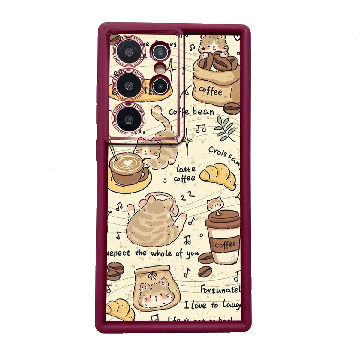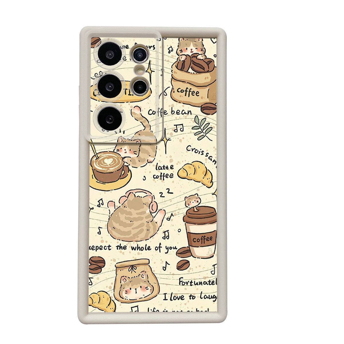 for Samsung Galaxy S24 S23 Ultra S22 Plus S21 FE S20 Cute Coffee Cat Full Protective Phone Case Anti Drop Cover
